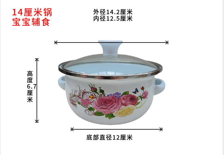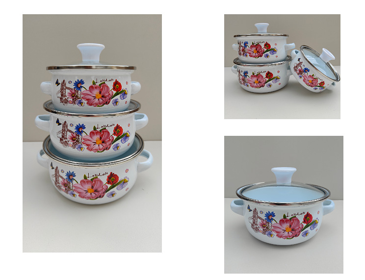 Olla de tres piezas de esmalte directo de fábrica mini olla de sopa aceite de doble oreja olla de fideos instantáneos fondo plano pequeña olla caliente