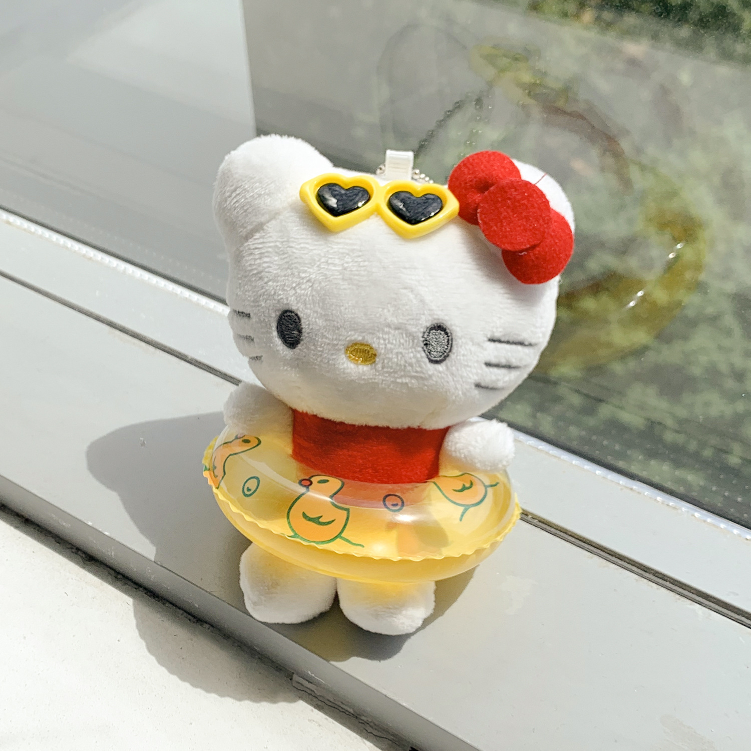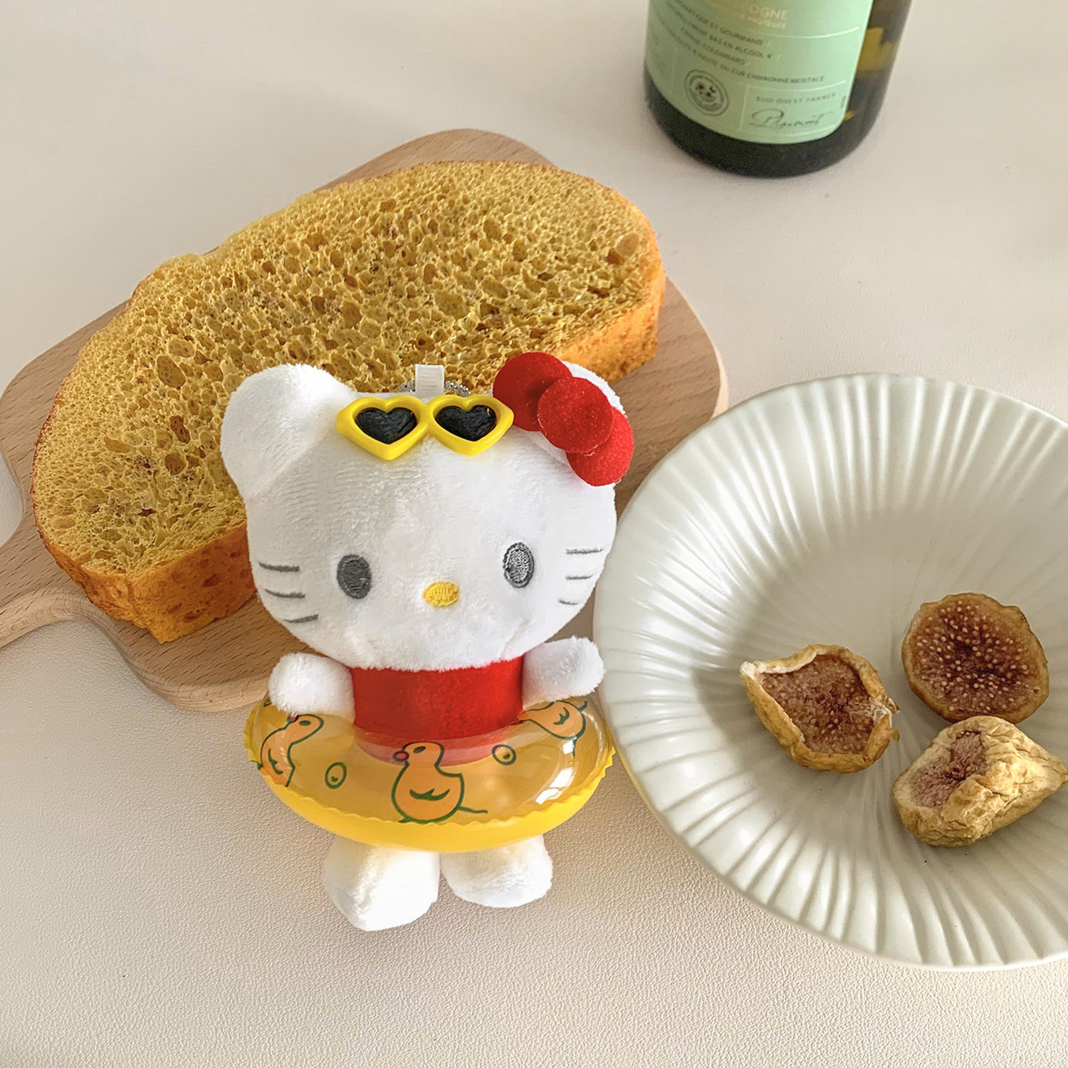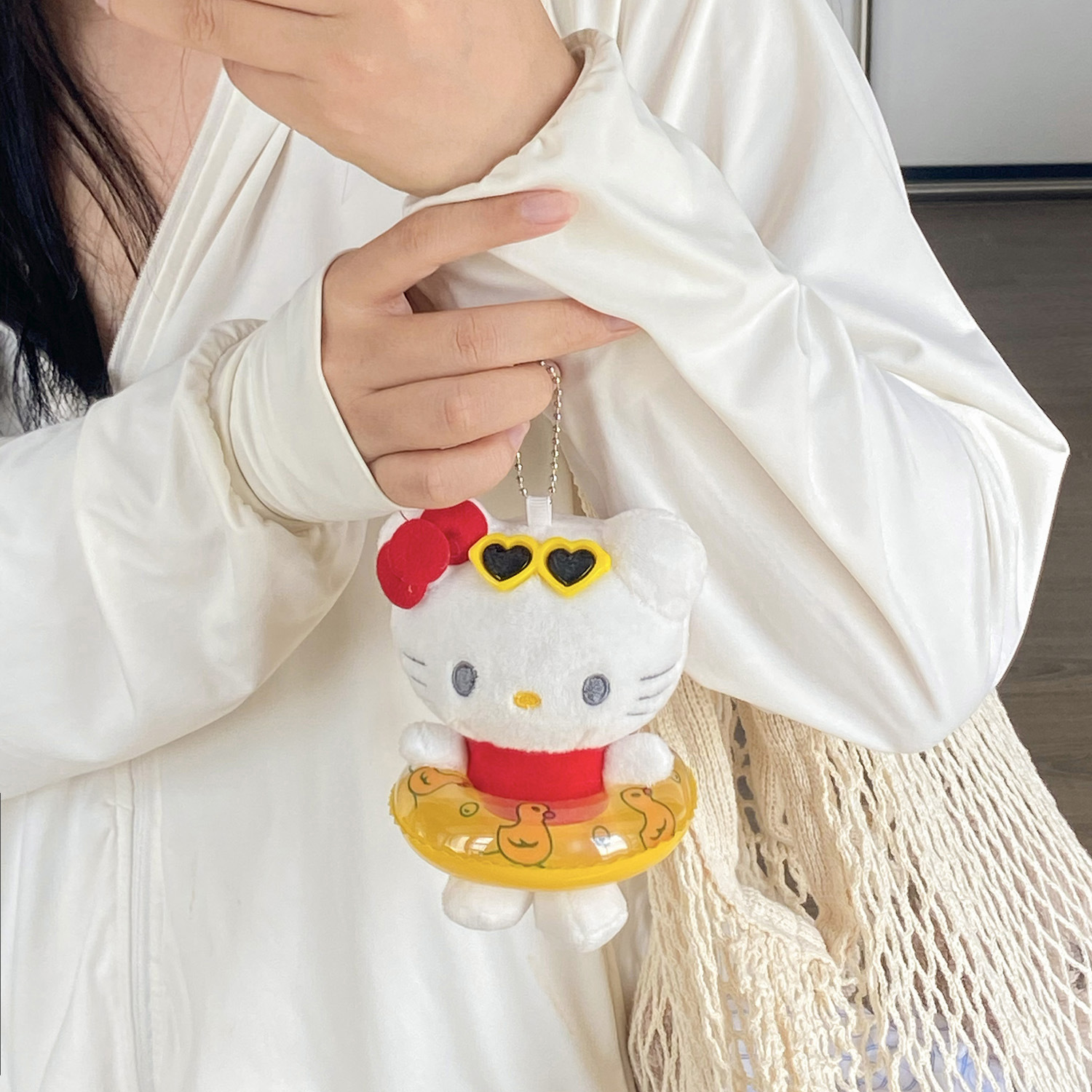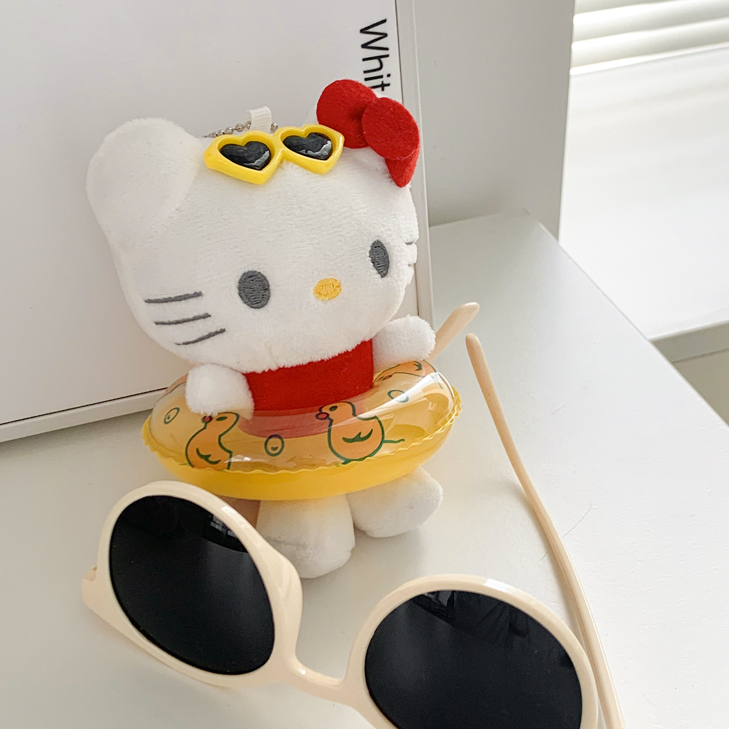 Natación anillo Kitty gato muñeca colgante ins lindo chica dibujos animados muñeca Hello Kitty estudiante colgante llavero