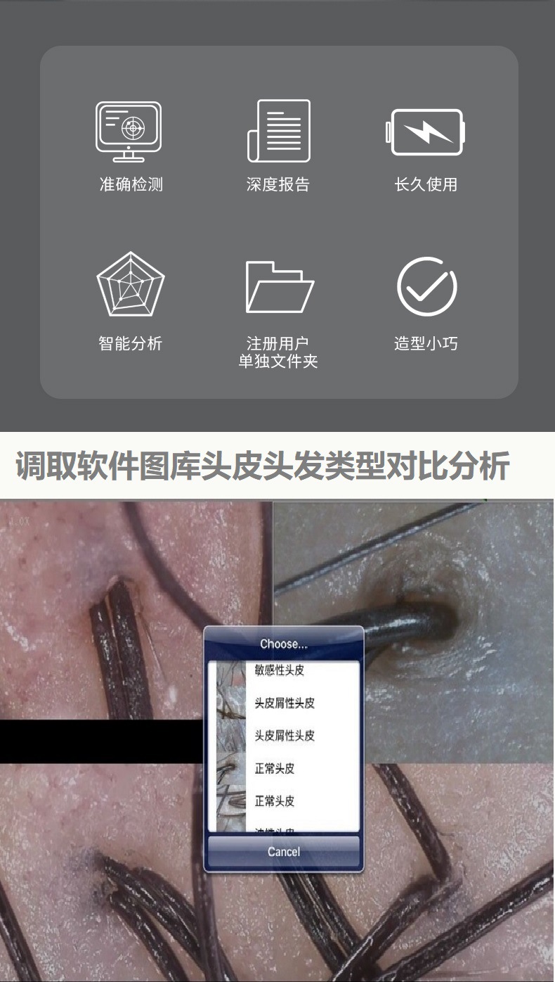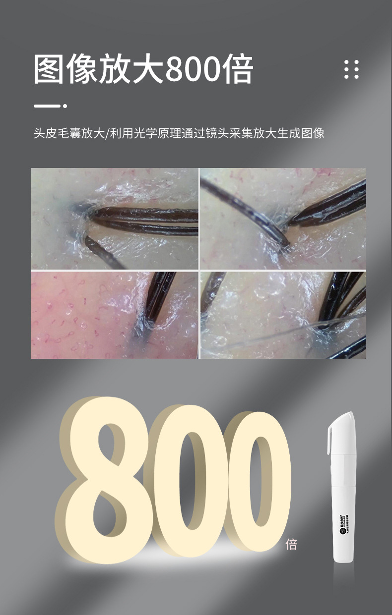 HD 800X portátil especializado detector de piel del cuero cabelludo probador compatible con Android IOS tableta teléfono móvil para 13 años