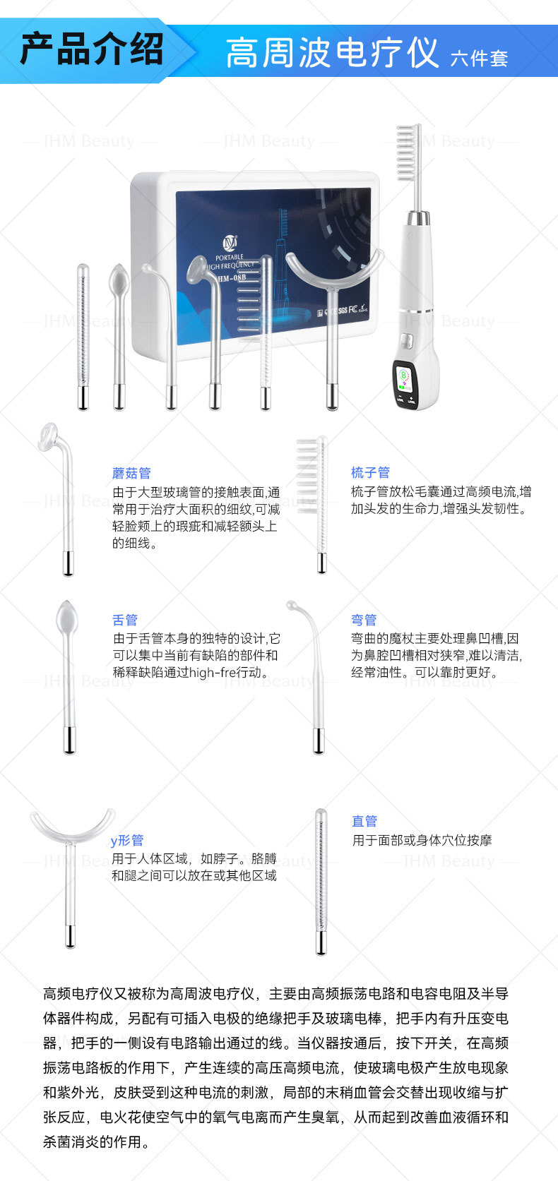 Color pantalla de alta frecuencia electroterapia palo 6-piece set hogar electroterapia belleza instrumento ozono acné eliminación transfronteriza pequeño instrumento fabricante