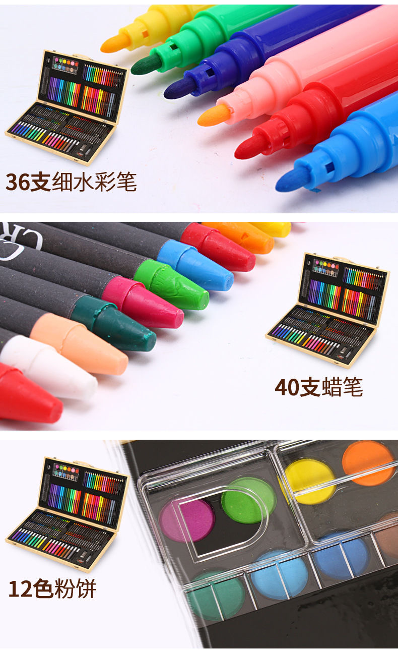 180 piezas caja de madera cepillo traje niños caja de regalo de entrenamiento regalo de graduación acuarela pluma crayón registro regalo