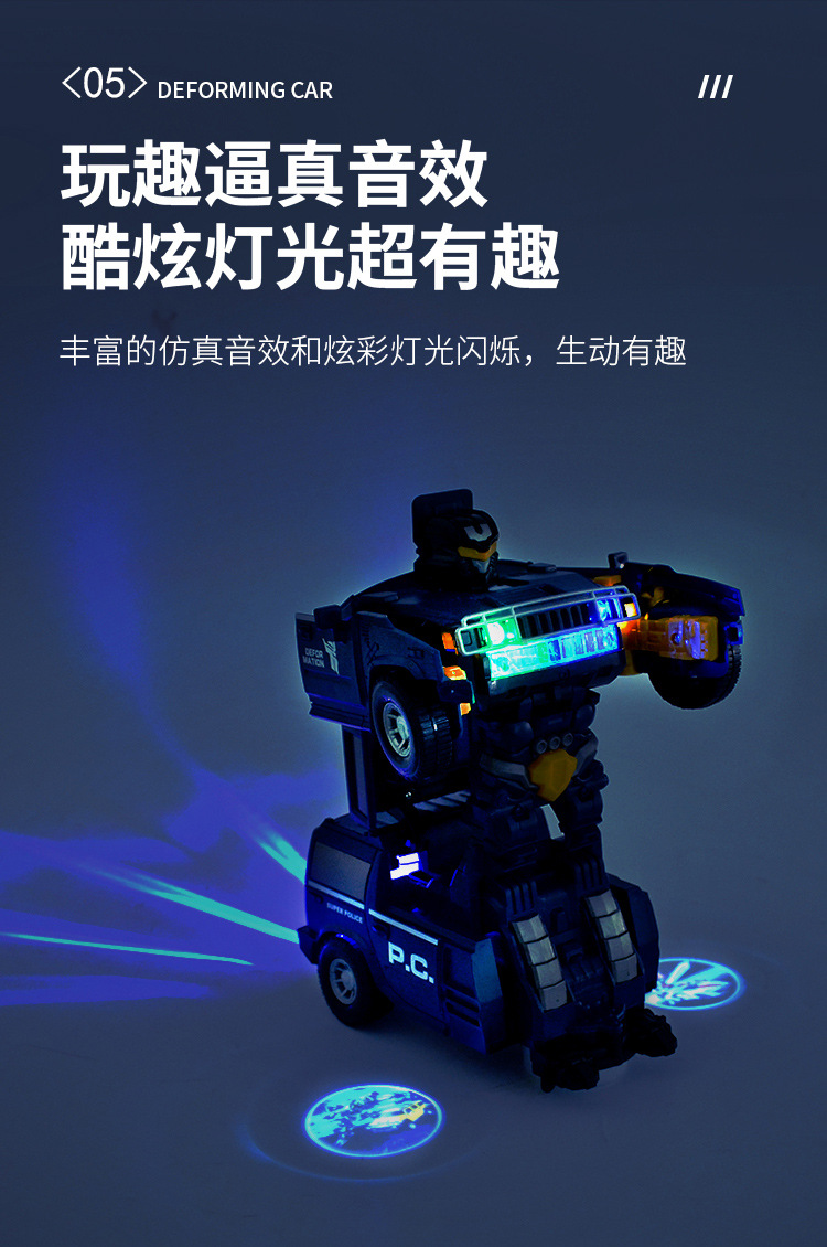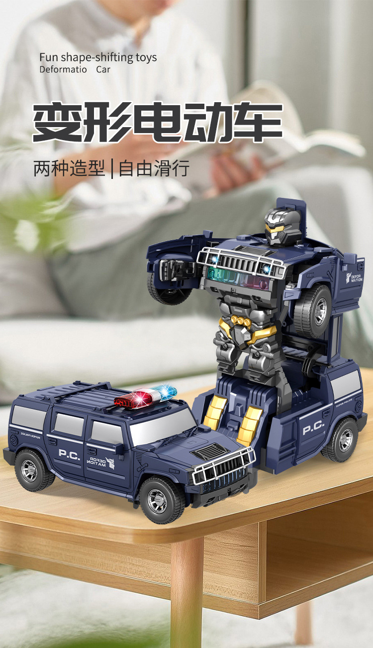 Coche de policía universal de juguete eléctrico para niños Humvee cantando robot de baile coche de deformación eléctrica coche de juguete luminoso
