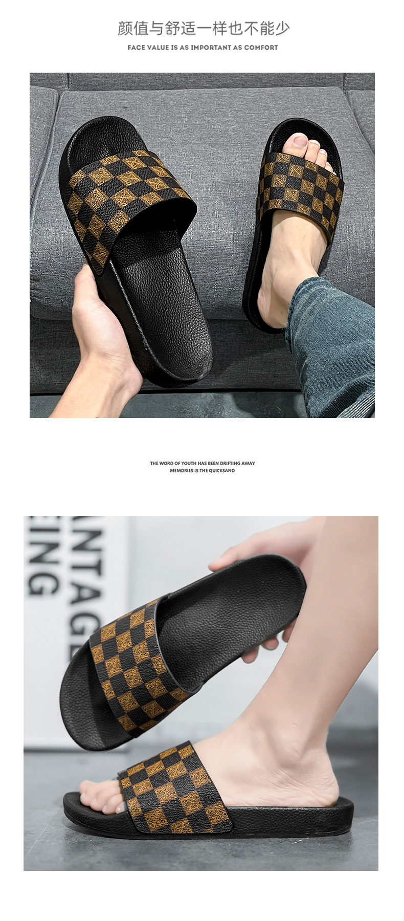 Verano al aire libre desgaste de los hombres transfronterizos de fondo suave caída sensación más tamaño deportes ocio al aire libre de una sola palabra de tablero de damas sandalias a cuadros