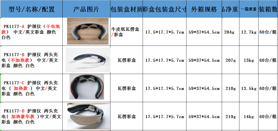 | Especificaciones | Carga PK718-A [4 pulsos],Carga PK718-C [calentamiento de 4 pulsos],Carga PK718-J [4 pulsos de voz],Carga PK718-R [voz de calentamiento de 4 pulsos],Carga PK718-0 [voz de calentamiento de 4 pulsos] control remoto,Carga PK1177-B [2 pulsos],Carga PK1177-C [2 pulsos de calentamiento],Modelo de batería PK1177-A [2 pulsos],Carga PK1177-D [control remoto de calentamiento por pulsos de 2 cabezas] |