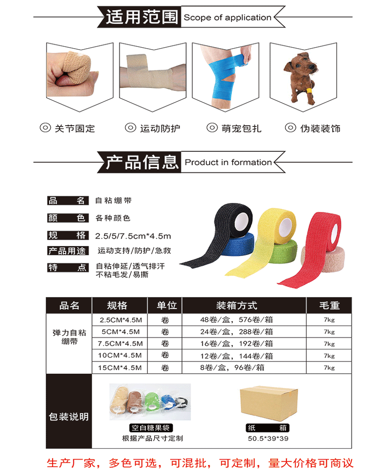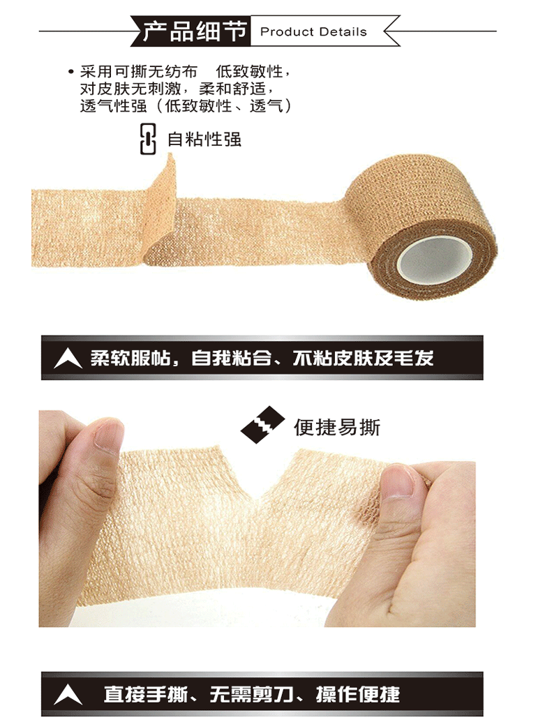 Vendaje elástico autoadhesivo al por mayor de fábrica deportes de protección de uñas vendaje elástico no tejido autoadhesivo protector de dedo vendaje
