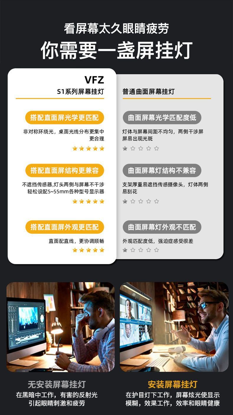 Aleación de aluminio de control remoto monitor portátil cámara de protección para los ojos computadora LED pantalla de computadora de protección para los ojos luz colgante