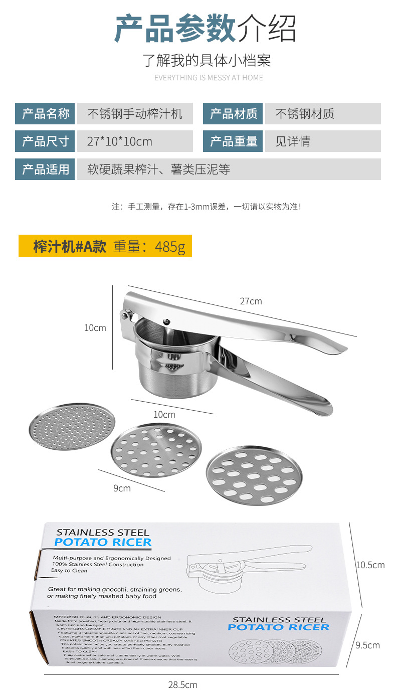Acero inoxidable exprimidor manual de la patata exprimidor de limón prensa de barro prensa de ajo cocina vegetal Prensa