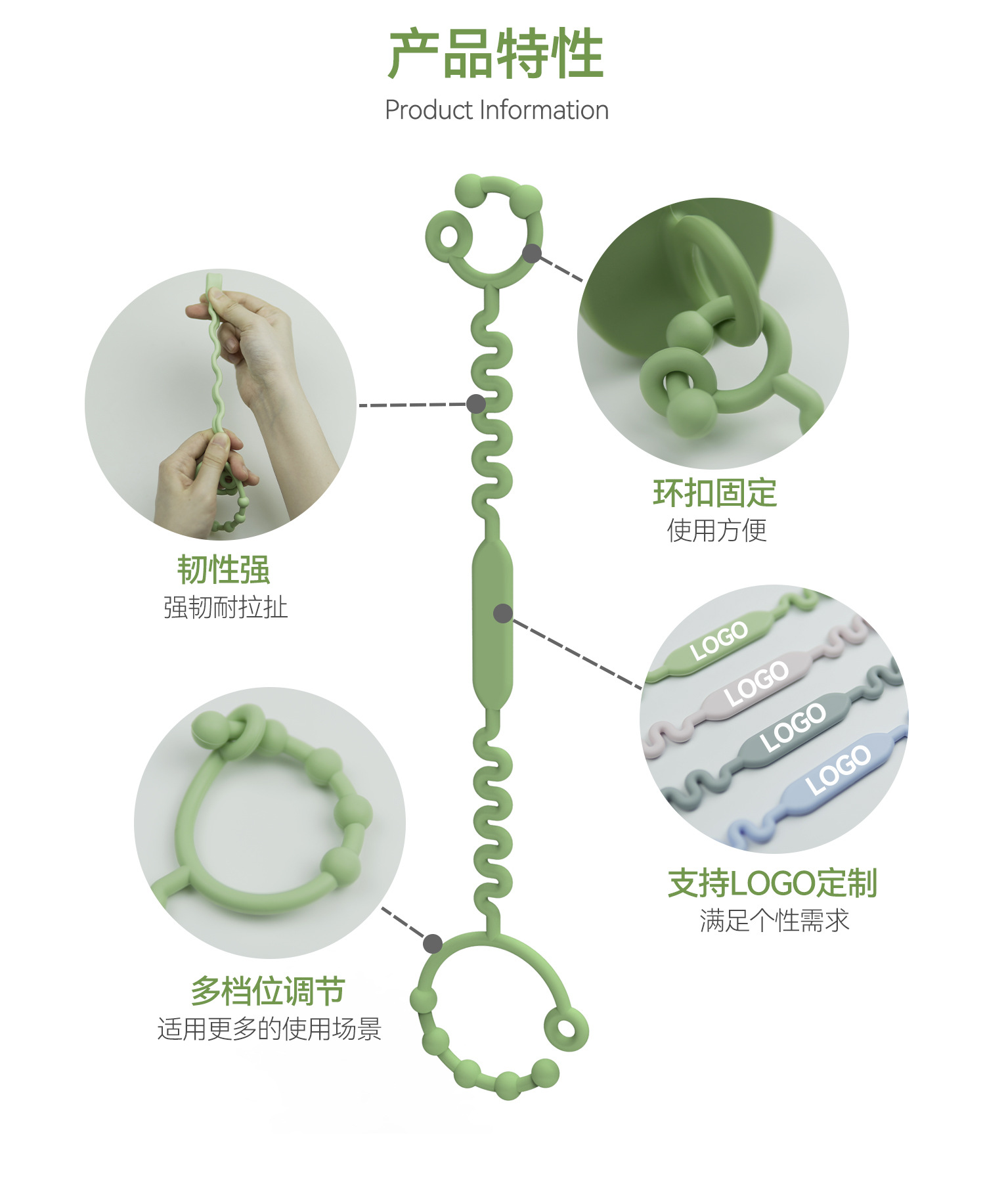 Botella de alimentación de silicona al por mayor transfronteriza cadena anti-perdida de silicona multifuncional cuerda anti-caída botella de alimentación taza de agua clip de pezón cuerda fija