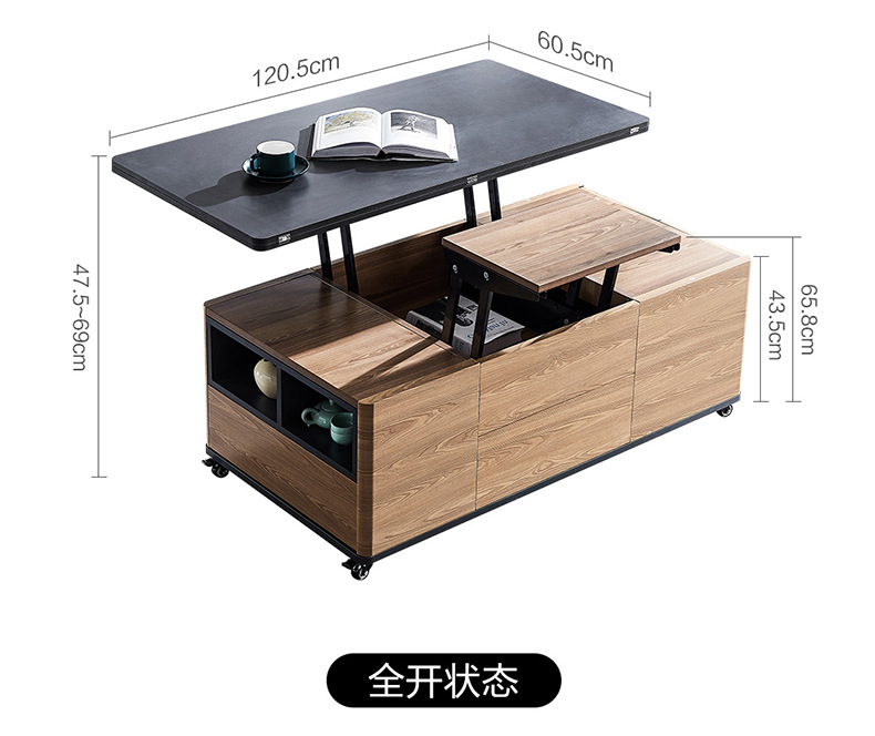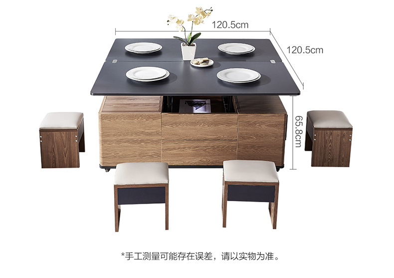 Mesa de café de elevación multifuncional que cambia la mesa de comedor de doble uso integrado pequeño apartamento ligero mesa de comedor plegable de lujo almacenamiento creativo multifuncional