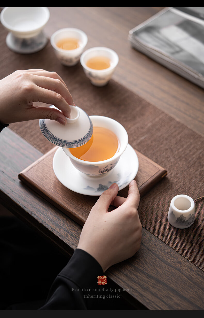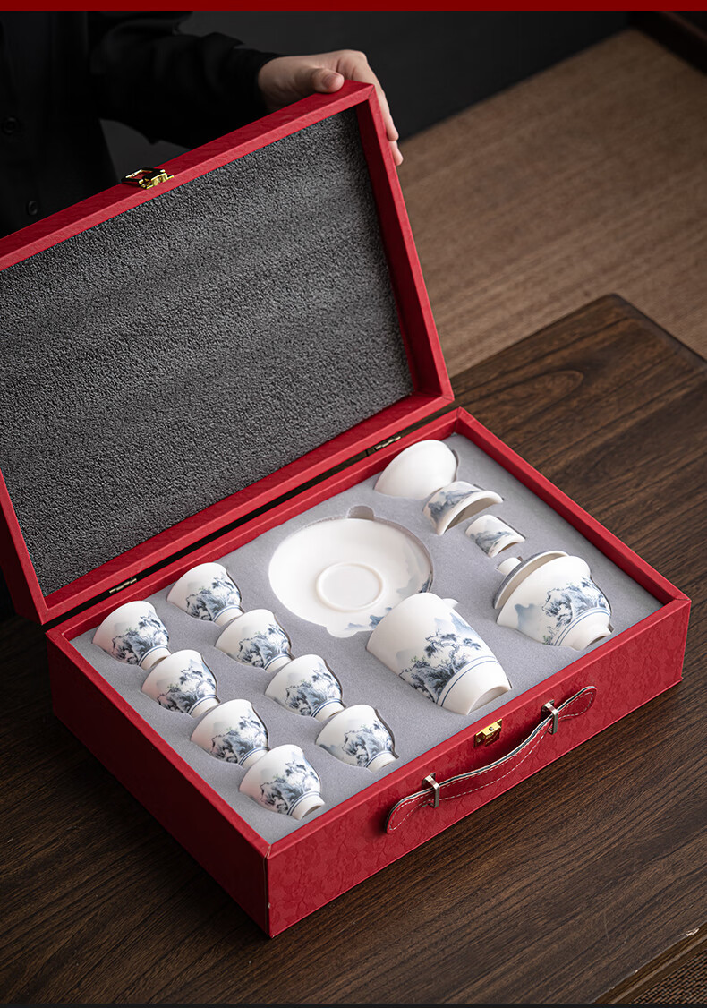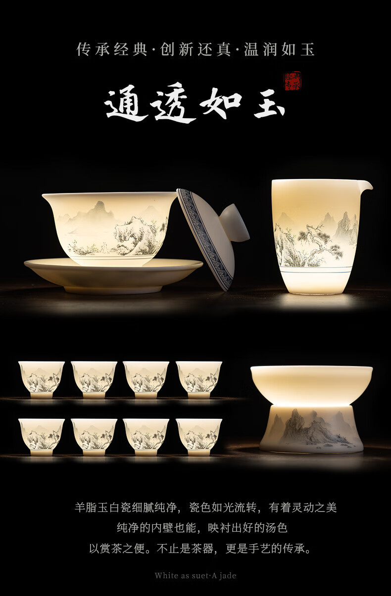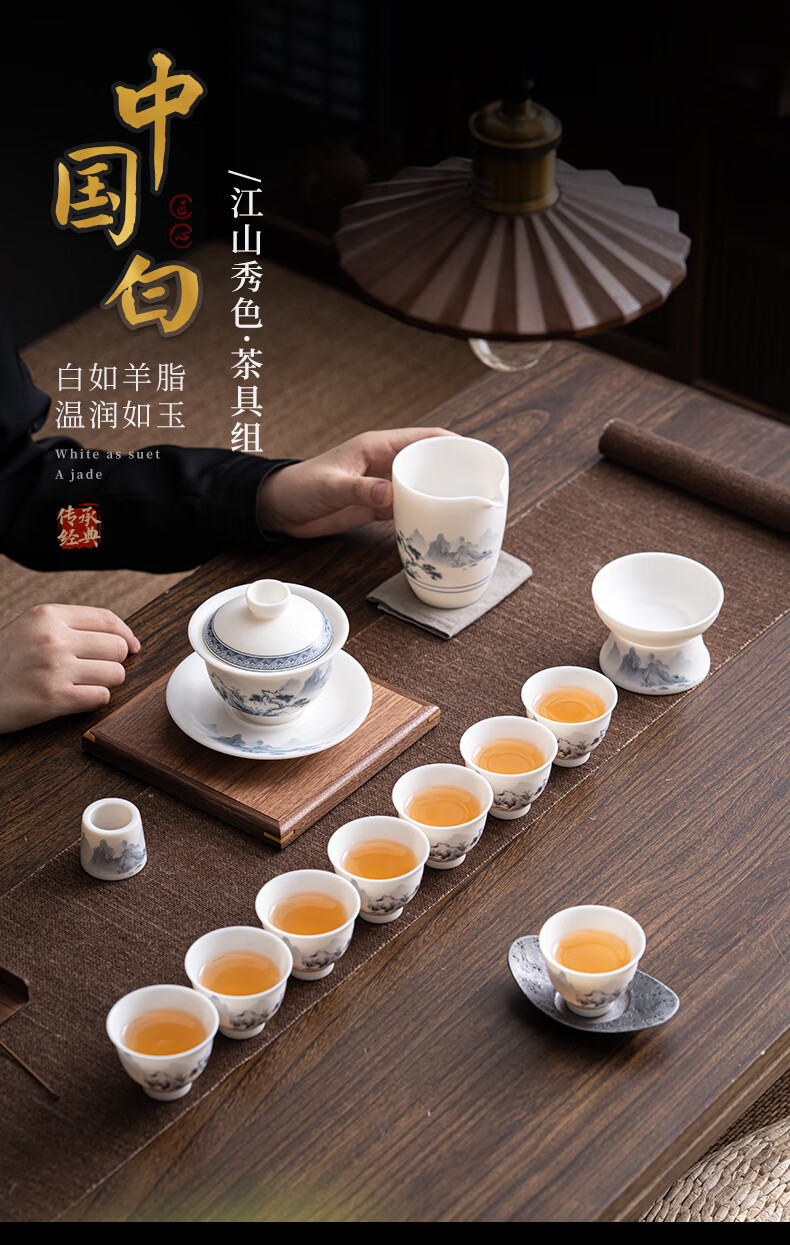 Su juego de té Blanco chino de cerámica Jiangshan hermoso color ovejas grasa Jade Kung Fu juego de té traje caja de regalo Dehua cerámica