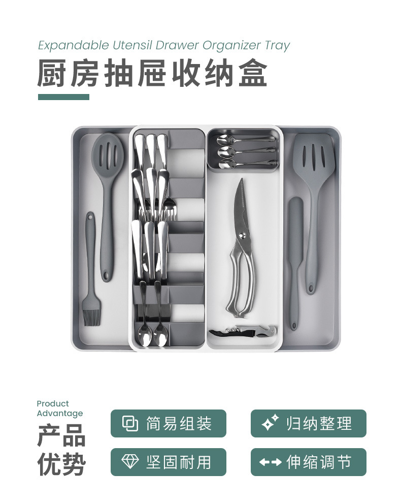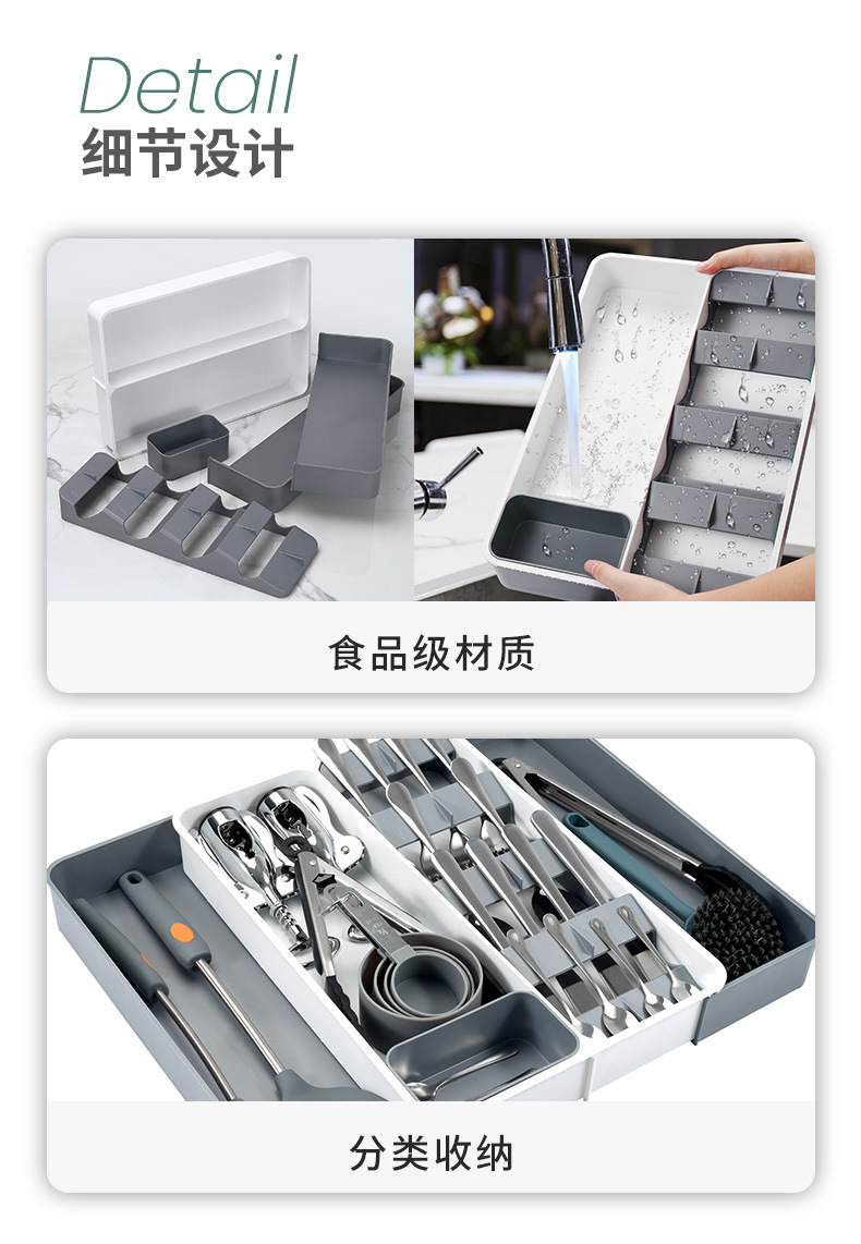 Cocina nueva cuchillo, tenedor y cuchara vajilla almacenamiento rack cocina vajilla caja de almacenamiento cajón retráctil cuchillo, tenedor y cuchara organizador rack