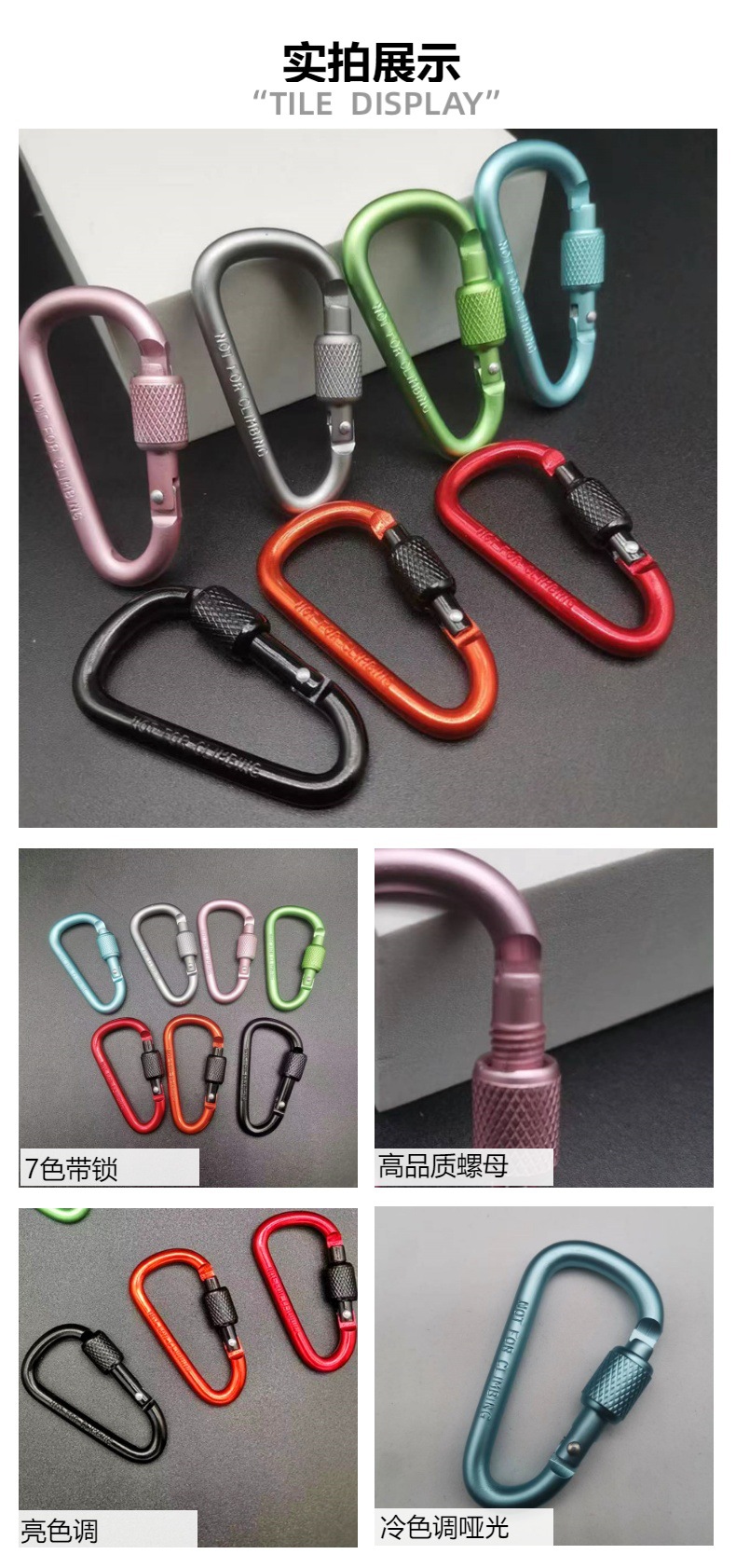 Mosquetón de aleación de aluminio al aire libre colgante rápido N ° 6 llavero con cerradura mochila hebilla colgante tipo D con cerradura cuerda de viento hebilla