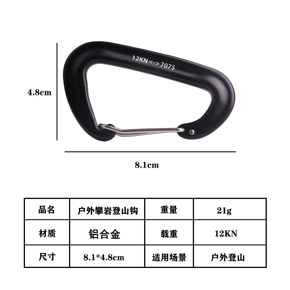 Fuente de la fábrica 7075 aleación de aluminio tipo D 12kn mosquetón mochila rápida hebilla colgante al aire libre camping hamaca gancho
