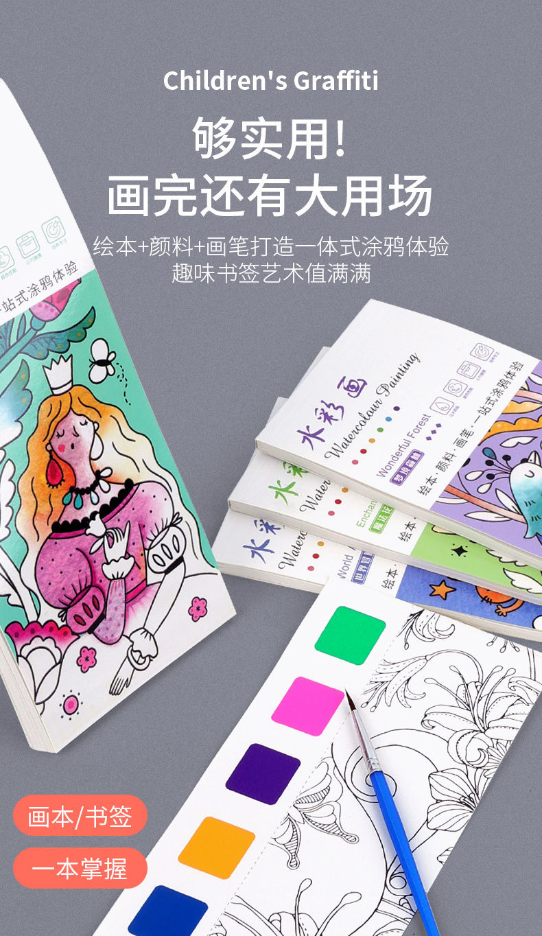 Libro de pintura de acuarela para niños Libro de pintura de acuarela de jardín de infantes bebé pintura de graffiti libro de imágenes para colorear al por mayor