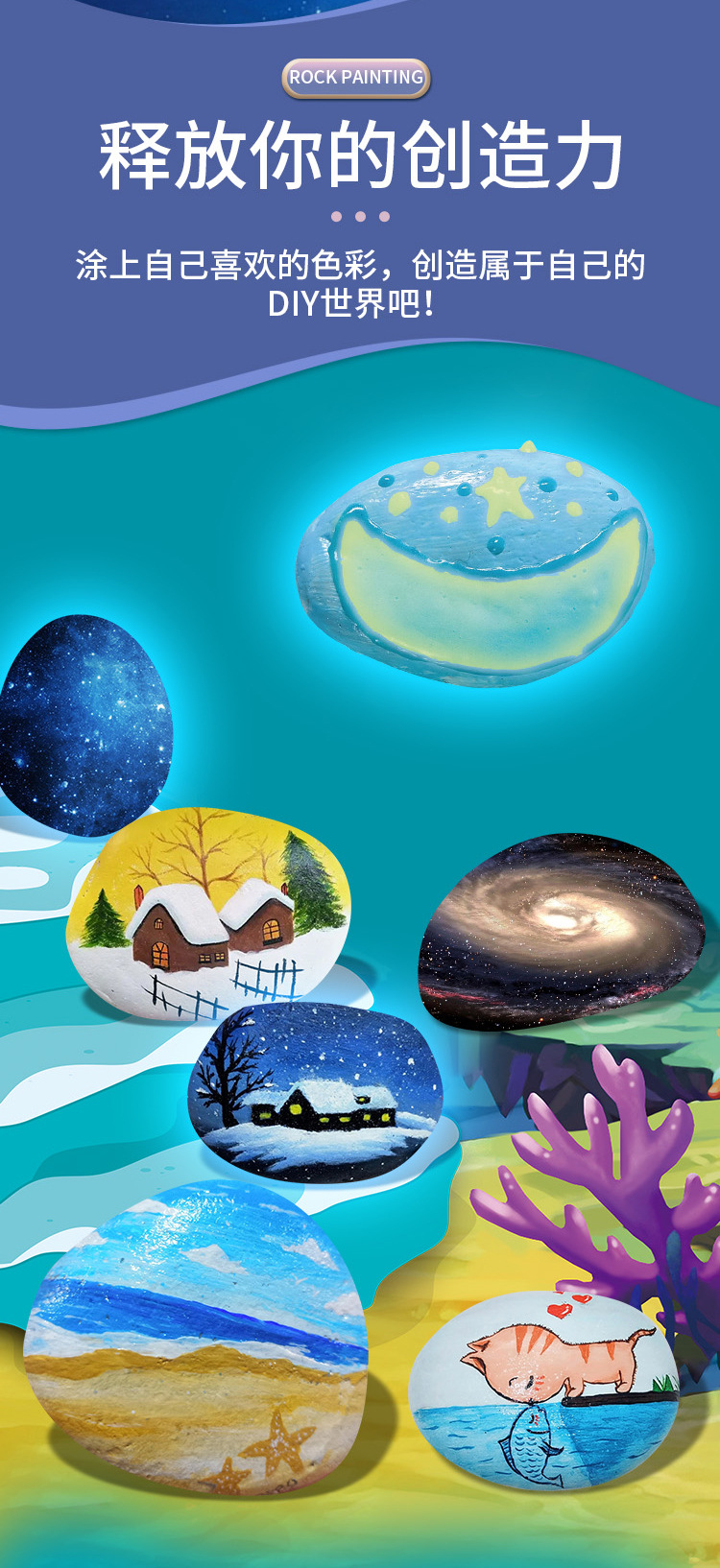 Transfronterizo exclusivo pintado piedra natural piedra luminosa hecha a mano bricolaje pintado a mano graffiti pintura creativa juguete regalo traje