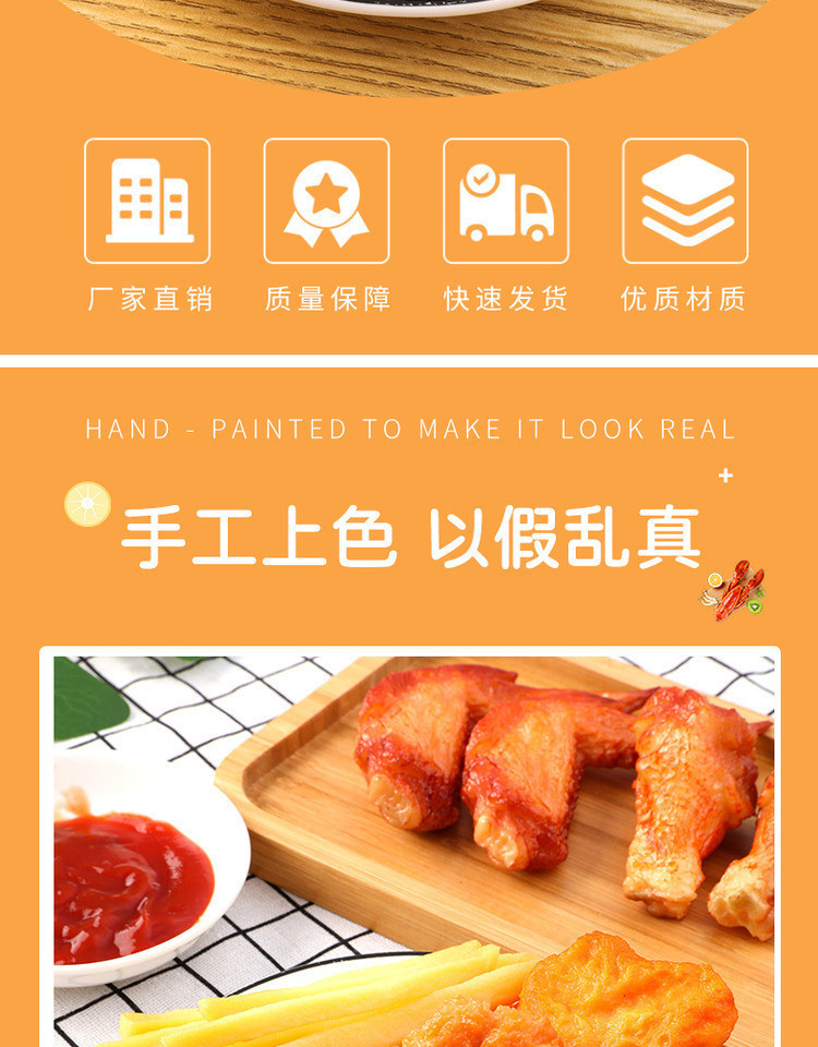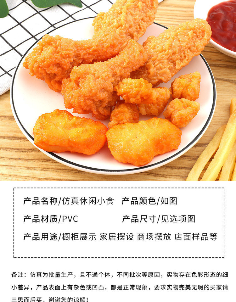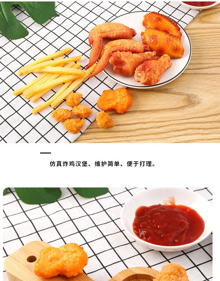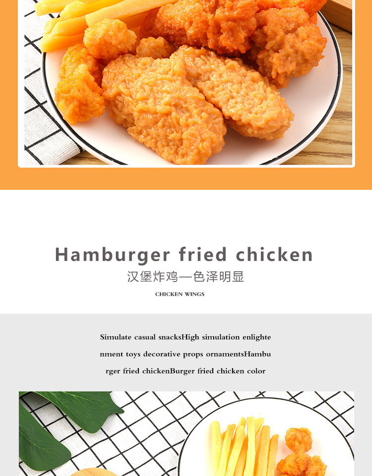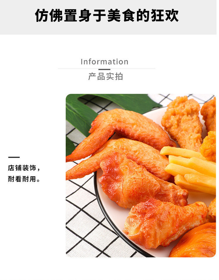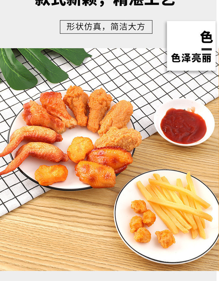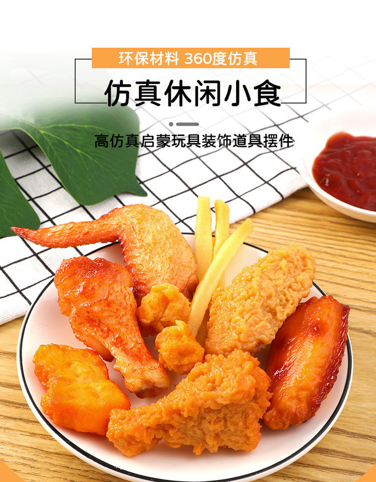 Fábrica en stock al por mayor simulación alimentos papas fritas pollo pierna alas Orleans cangrejo alicates fritos modelo de juego accesorios colgantes adornos