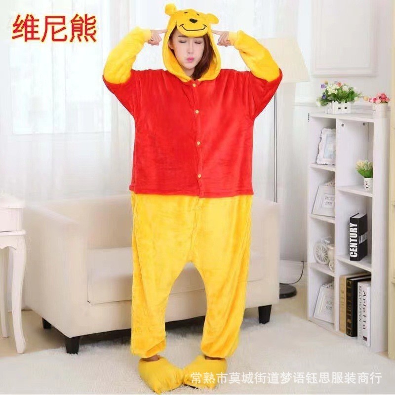 Transfronteriza de otoño e invierno de dibujos animados de animales pijamas de una pieza de franela engrosada versión higiénico kumamoto oso cálido homewear lote mixto