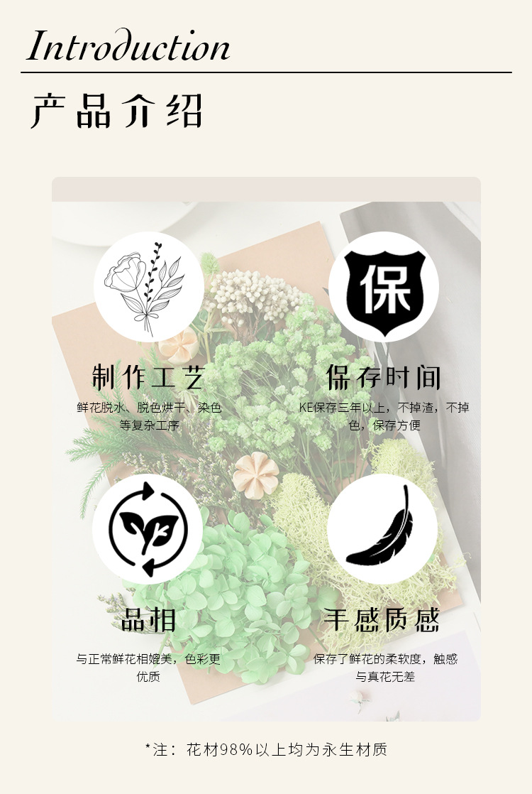 Flor seca flor eterna marco de fotos en relieve paquete de material flotante hecho a mano aromaterapia ventilador redondo actividad salón grupo edificio transfronterizo al por mayor