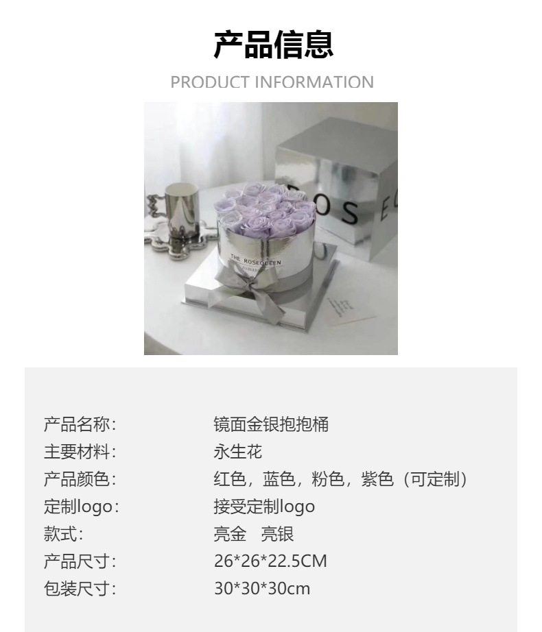 | Especificaciones | Barril dorado,Cubo de plata rosa,Plata,Rojo,Rosa Azul,Negro,Púrpura,Verde oscuro,Champán,Color Rosa 42 colores pueden ser seleccionados |