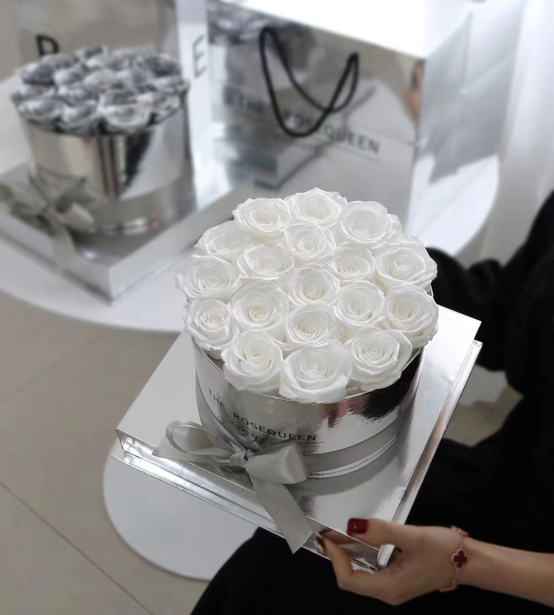 Espejo de plata ronda monopolio abrazo cubo flor eterna Oro Plata abrazo cubo flor eterna al por mayor