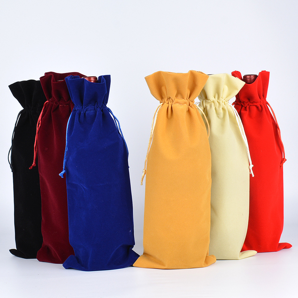 Venta directa de fábrica de franela bolsa de vino tinto cata a ciegas de vino tinto bolsa de regalo de vino bolsa de botella de vino con cordón