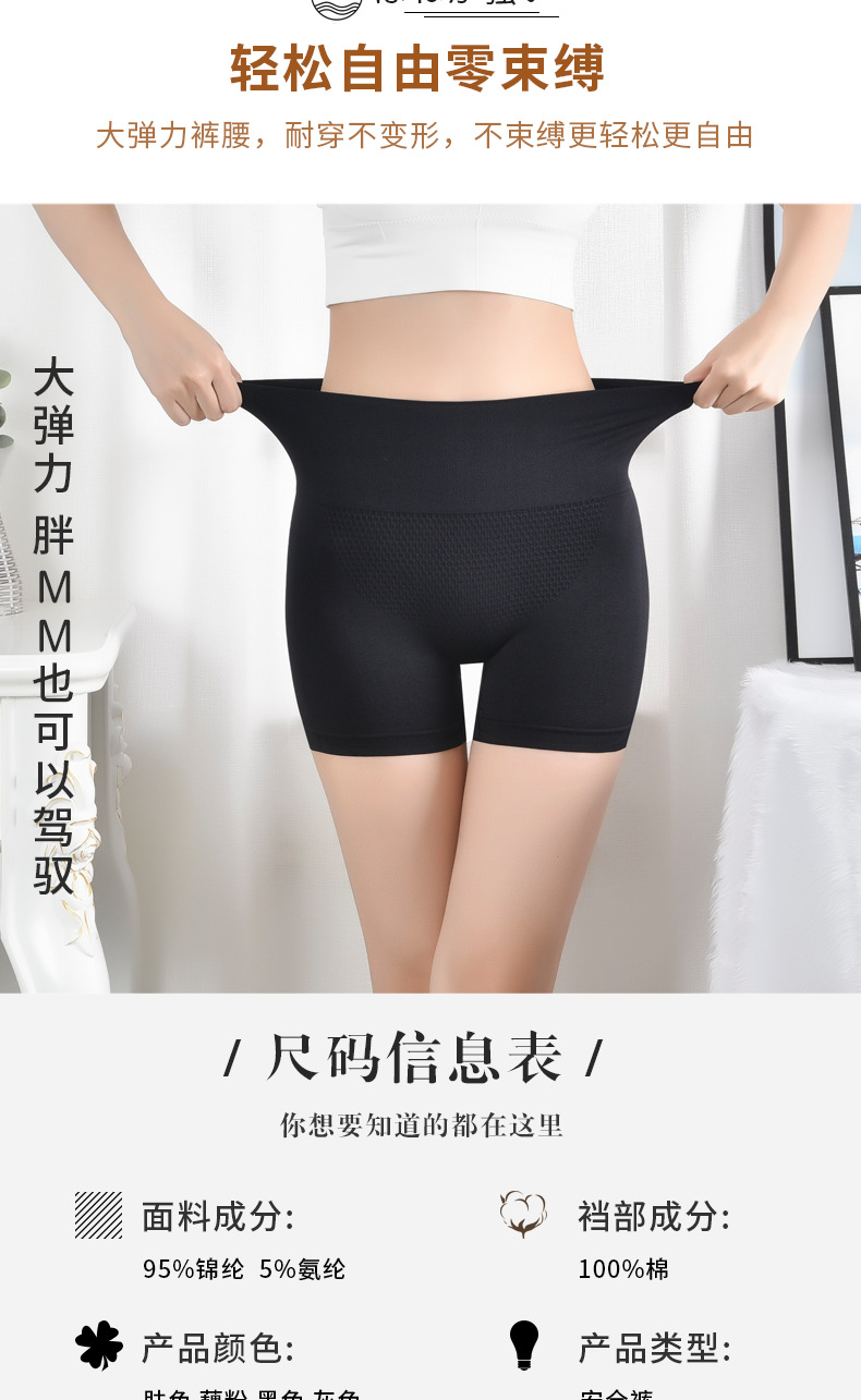 Pantalones de seguridad de contratación del vientre de verano nuevos pantalones cortos de boxeador de panal de cintura alta sin costuras