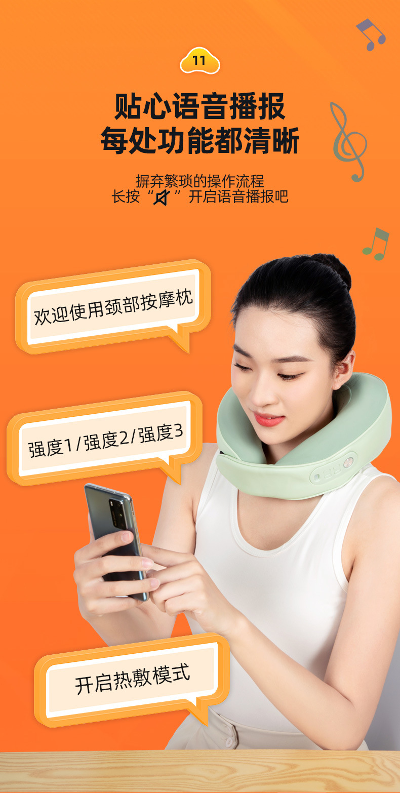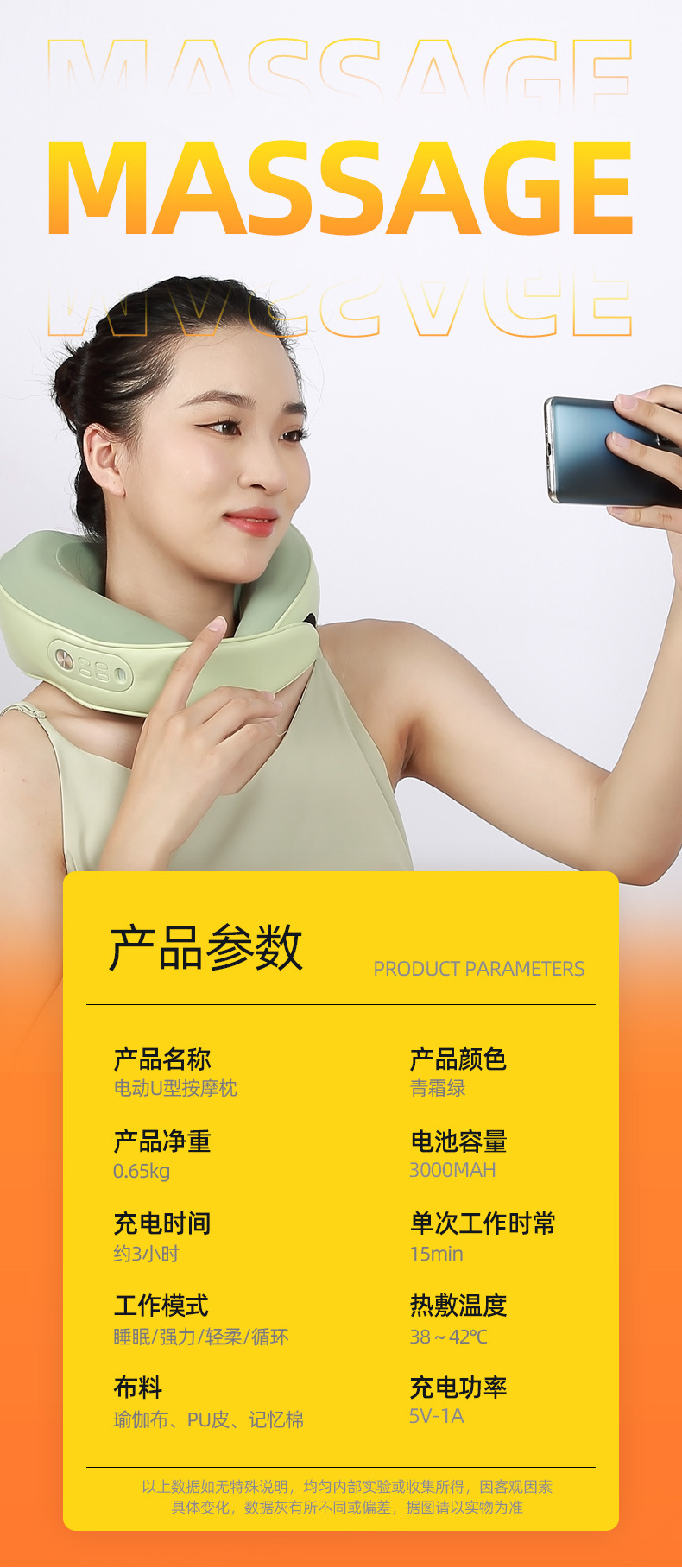 Almohada de masaje con aplicación, masajeador multifuncional en forma de U para columna cervical, masajeador eléctrico para cuello, protector de cuello, regalo