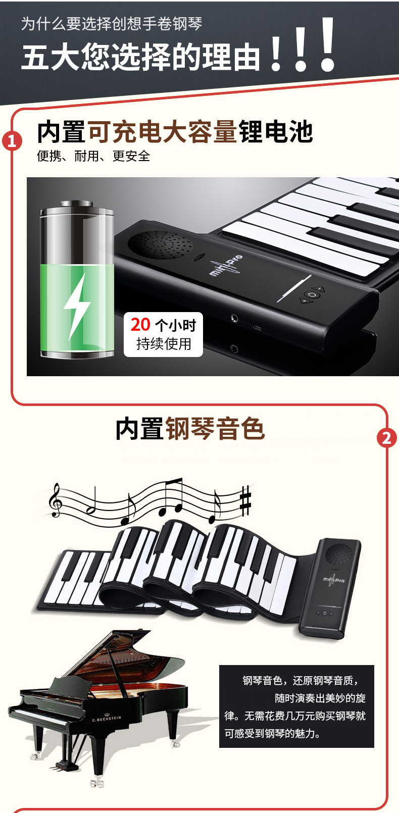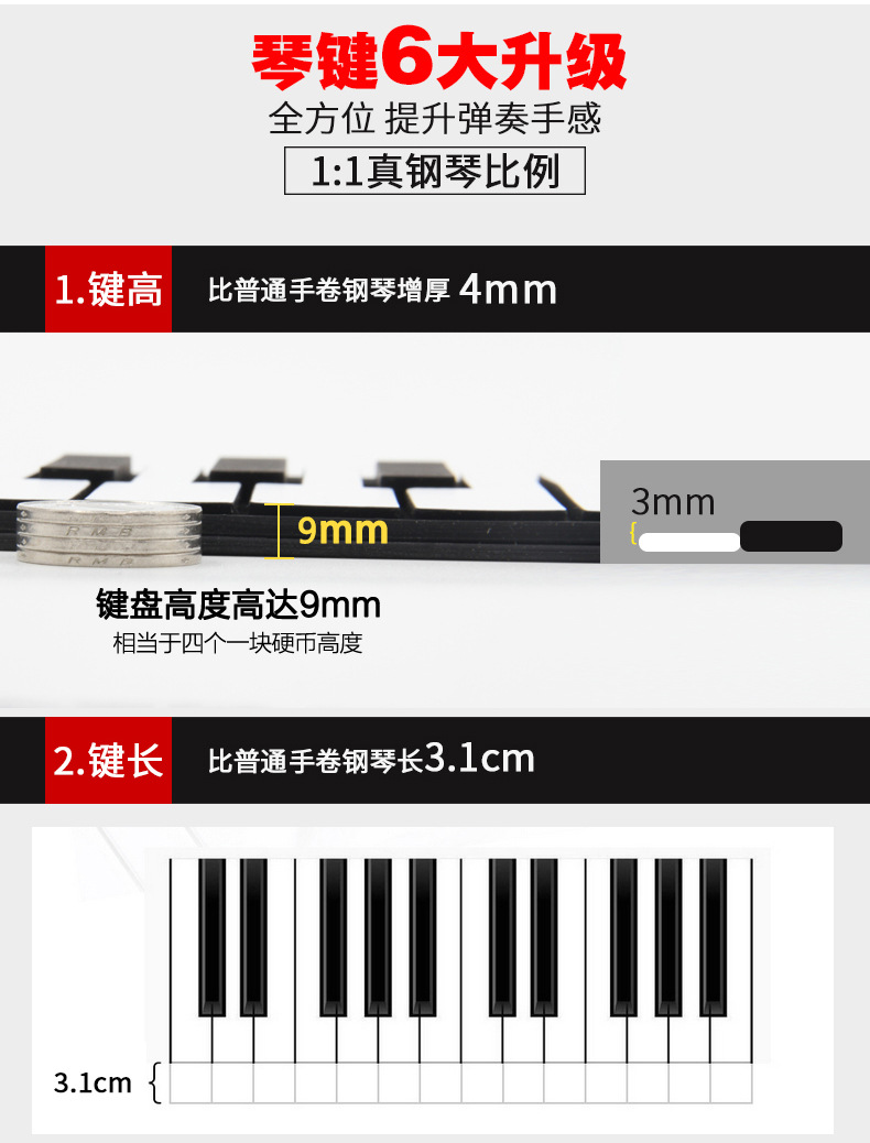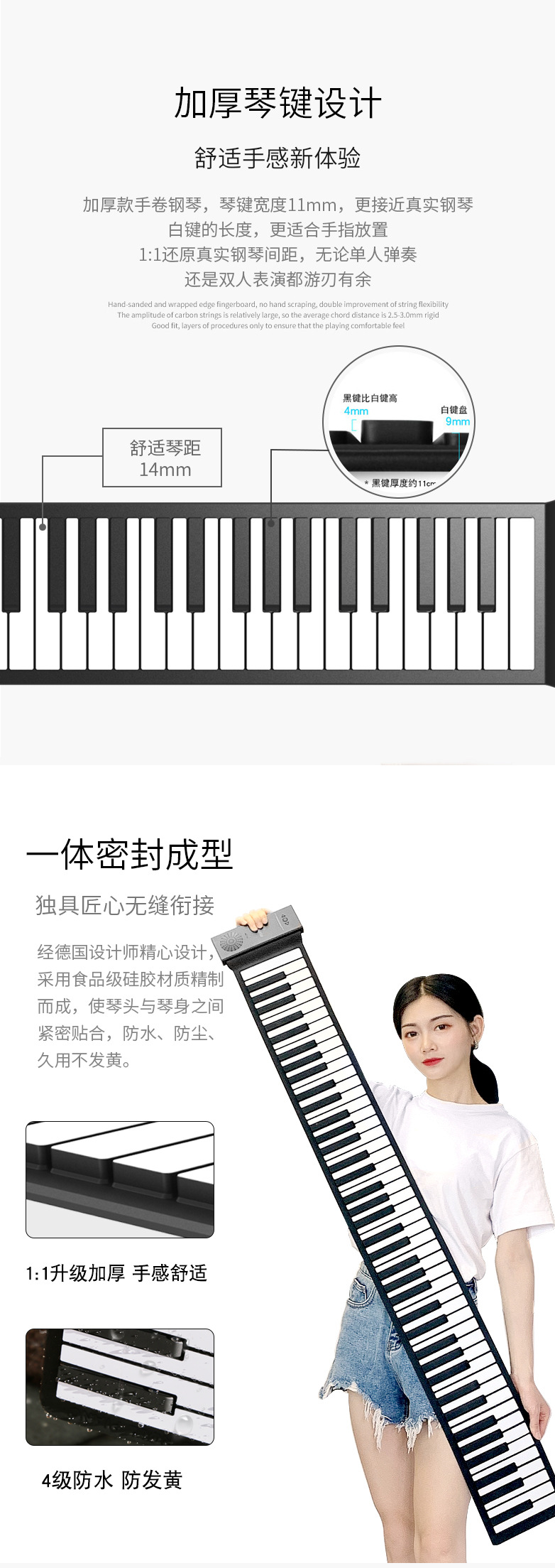 Rollo de mano piano 88 engrosamiento clave Edición Profesional con teclado externo plegable simulación práctica para adultos órgano electrónico portátil