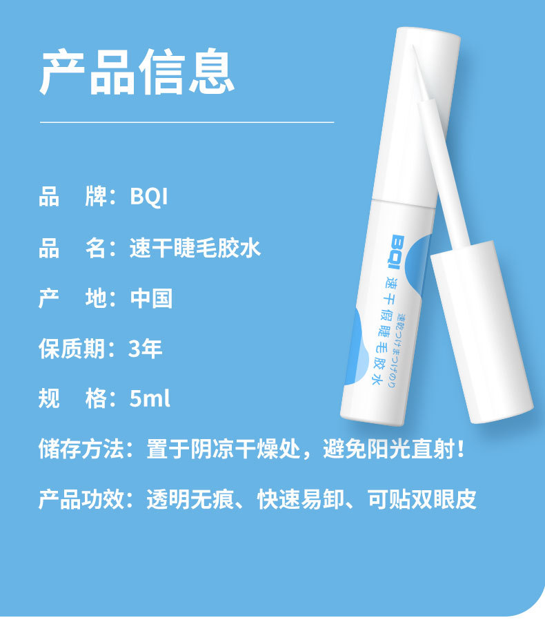 | Especificaciones | Pegamento de pestañas postizas de secado rápido BQI |