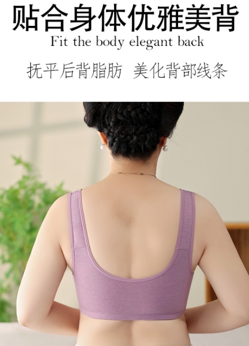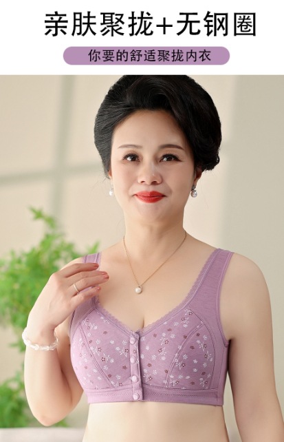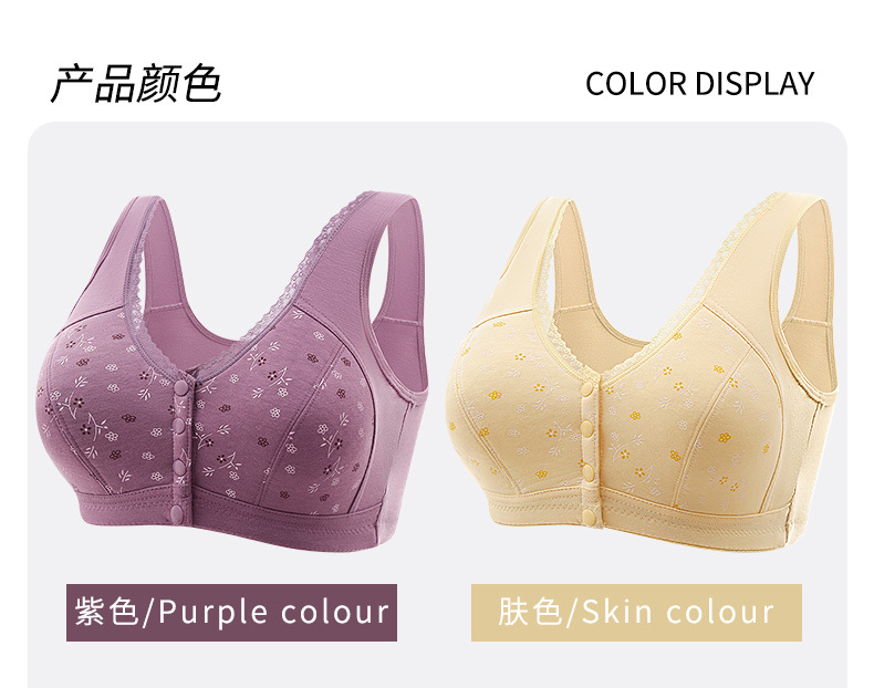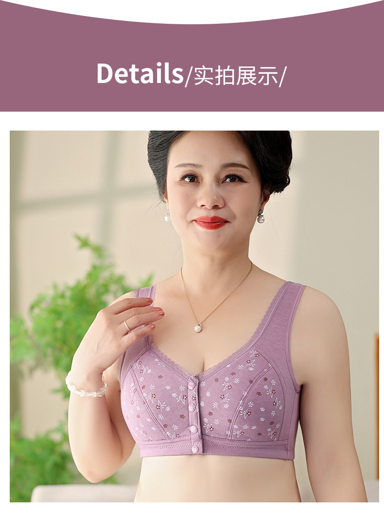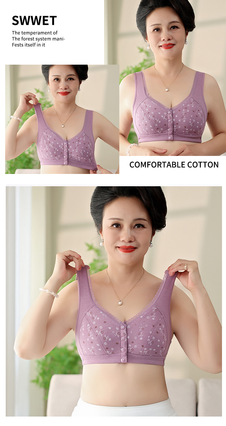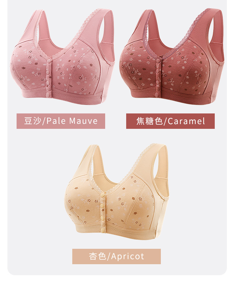 Nueva hebilla frontal de mediana edad y ancianos ropa interior de algodón suave de las mujeres más tamaño chaleco inalámbrico sujetador impreso ropa interior de las mujeres