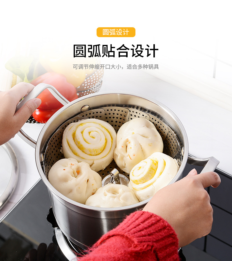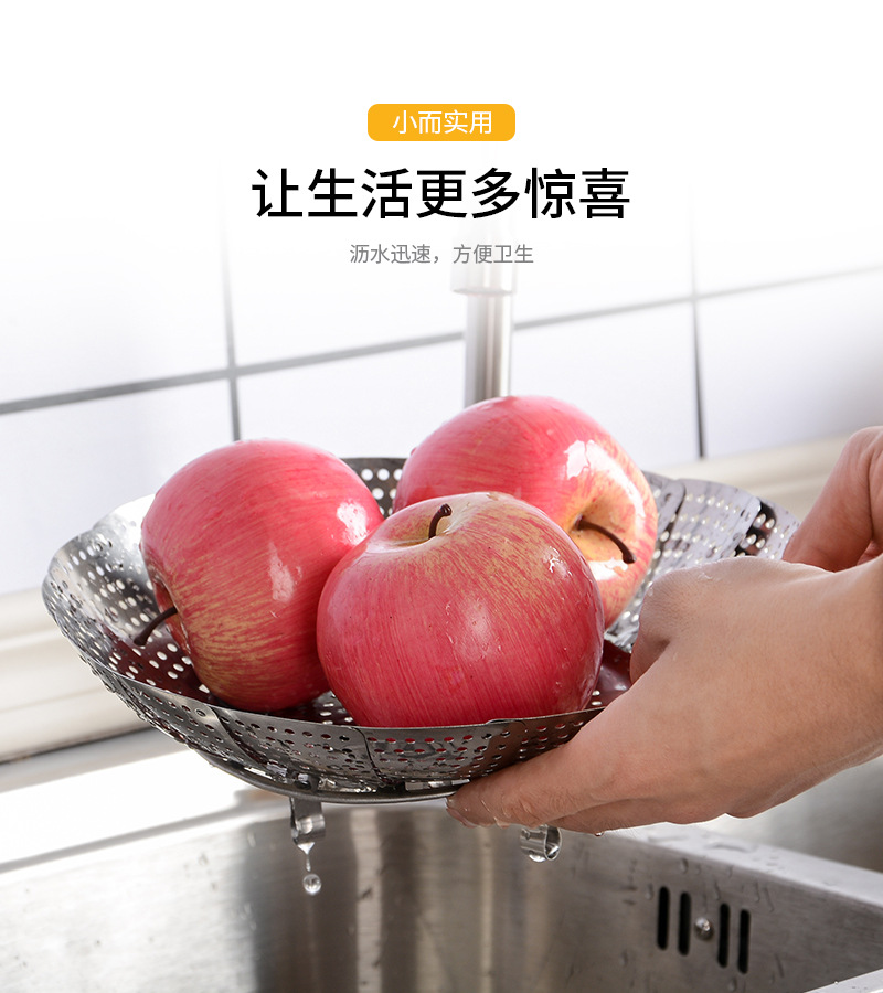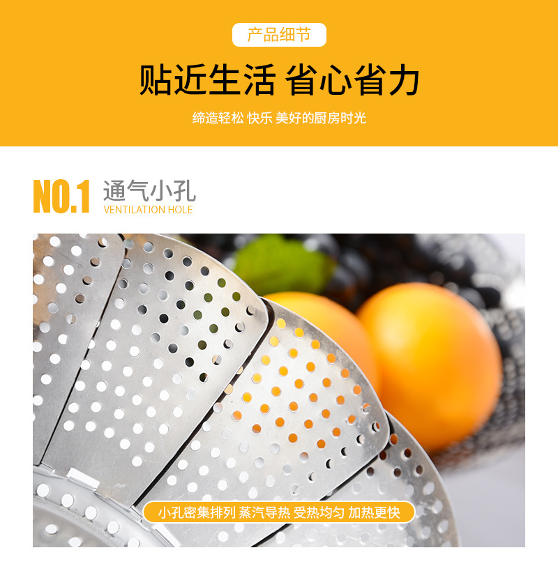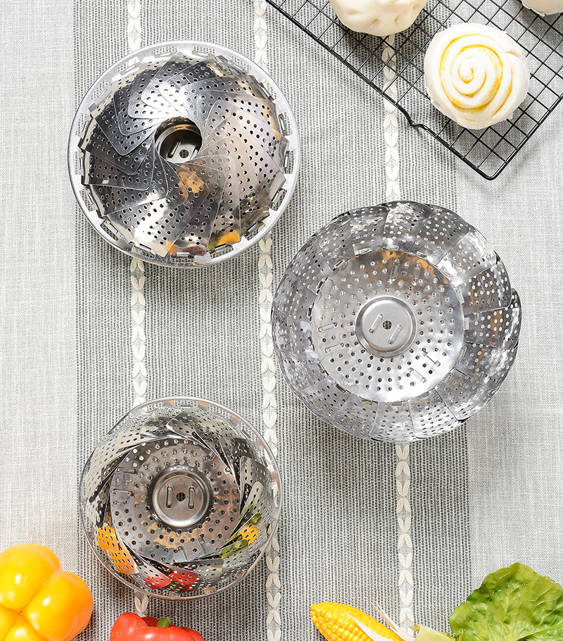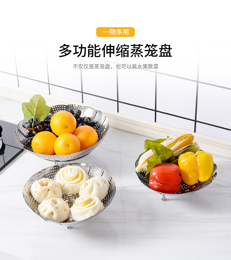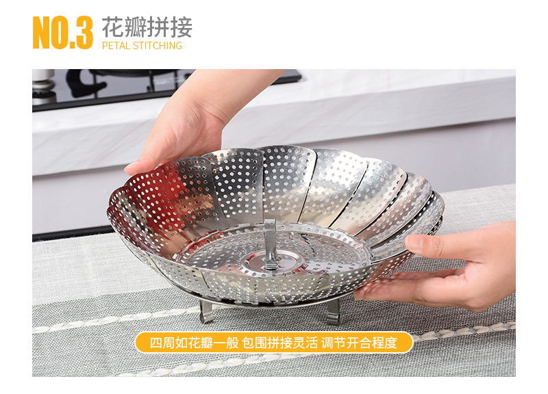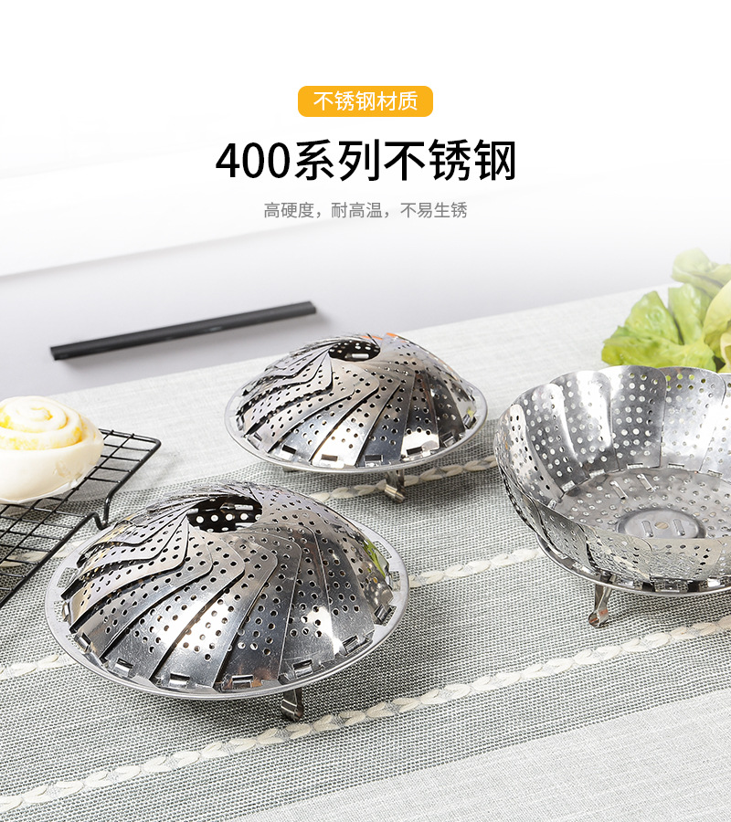 Placa de vapor de acero inoxidable Vaporizador de cocina de tres patas Placa de vapor plegable multifuncional Estante de vapor plegable doméstico Estante de estofado Fácil de almacenar