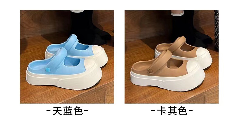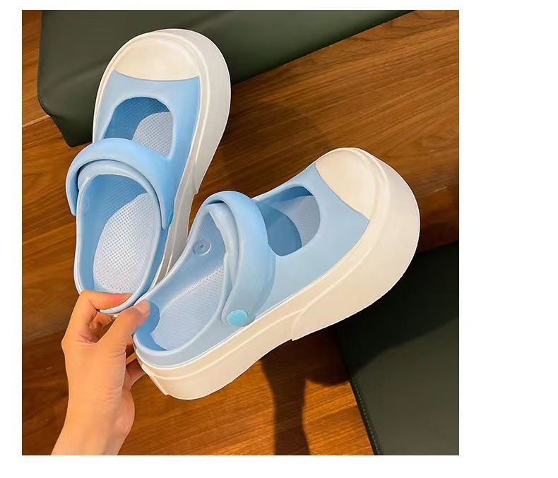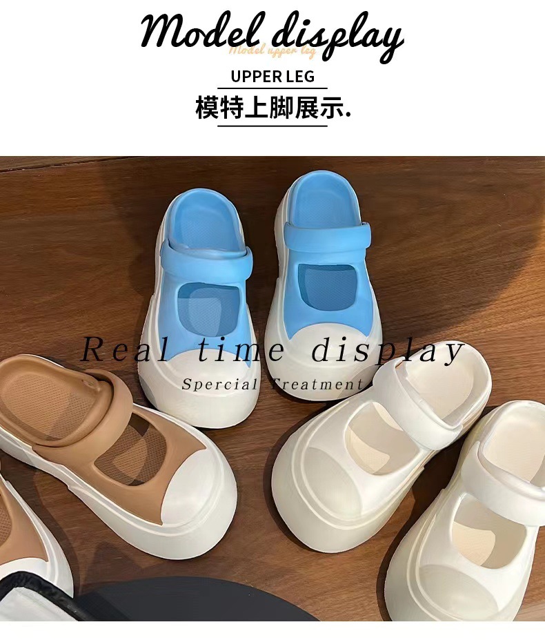 Zhao Lu si mismo estilo Mary Jane fondo grueso cerrado toe zapatillas de infrarrojos desgaste EVA zapatillas de moda de verano