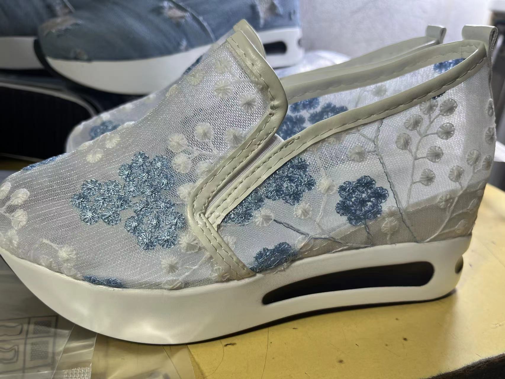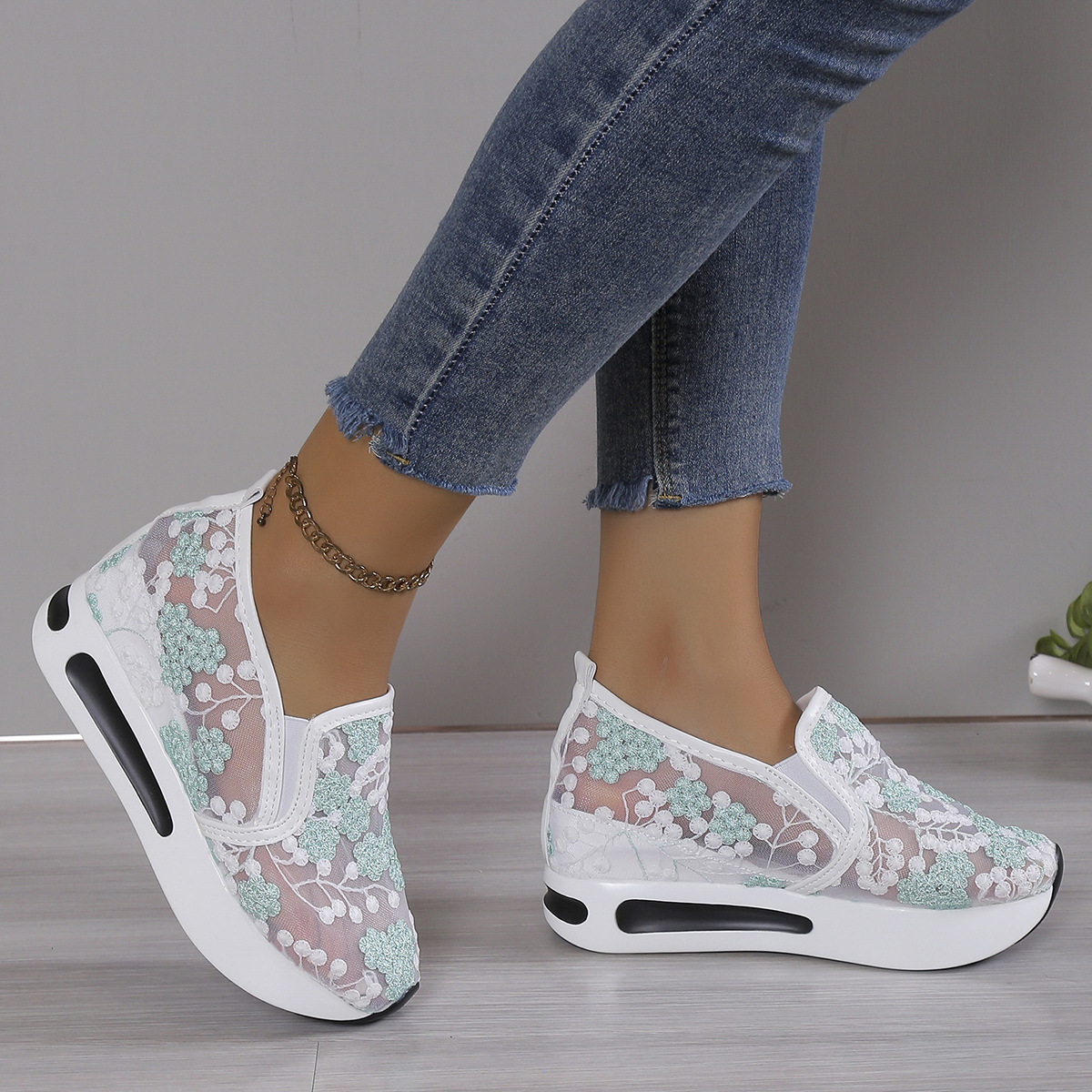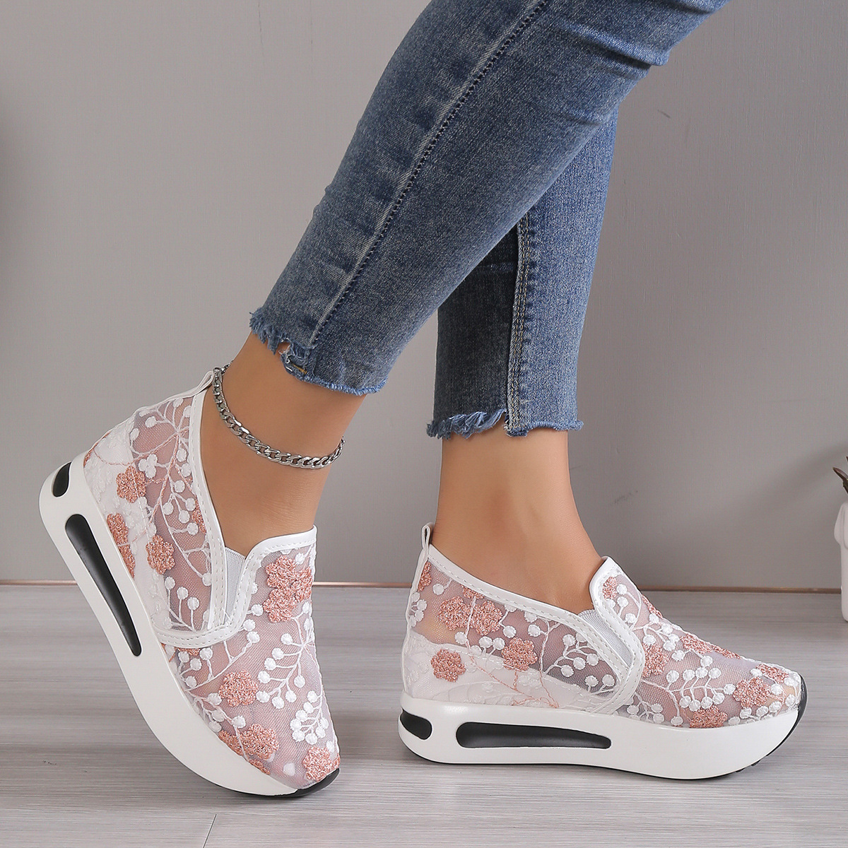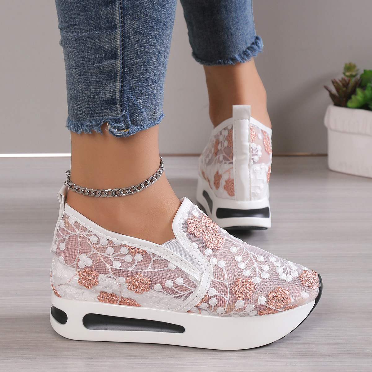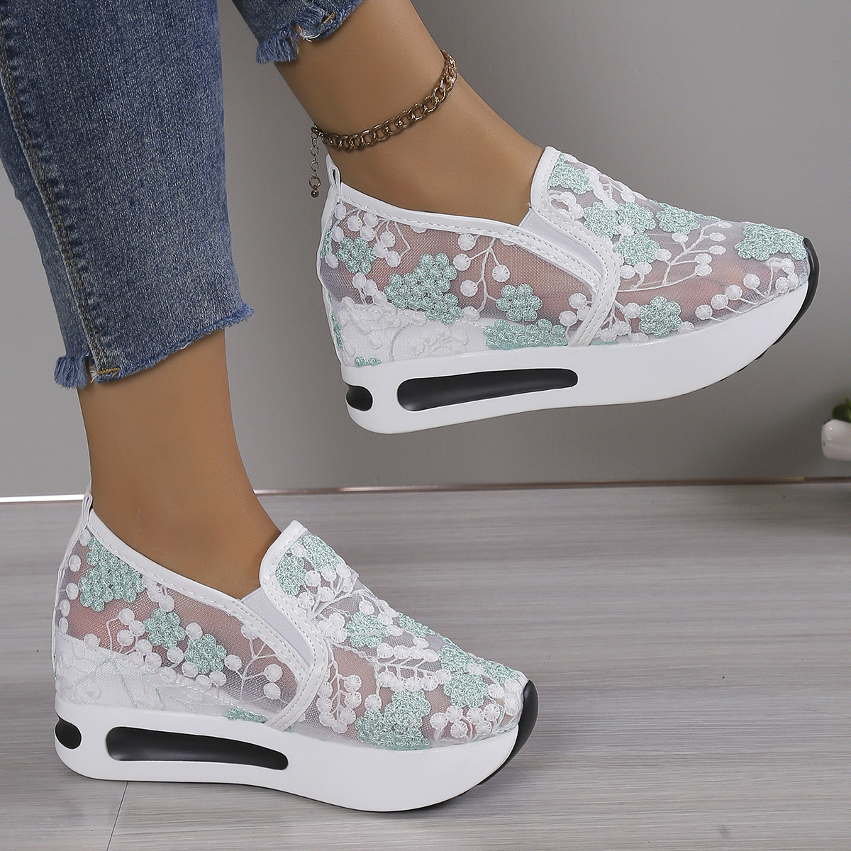 Zapatos individuales mujeres 2024 primavera versión coreana del nuevo encaje malla casual pies tacones altos elevan sandalias de mujer