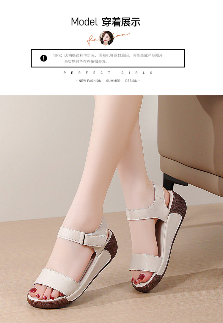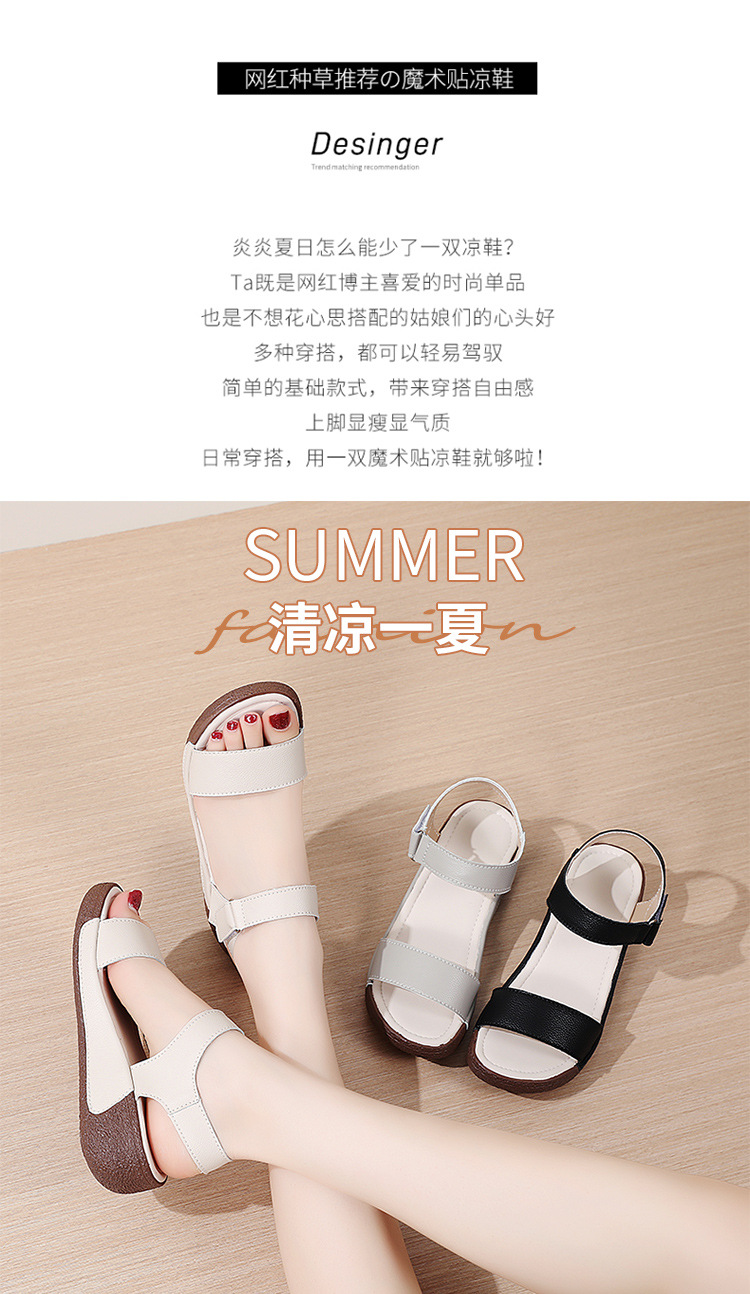 Sandalias de cuña de las mujeres 2023 Verano nuevas sandalias de plataforma de cuero genuino aumento de una palabra Velcro plataforma sandalias de las mujeres