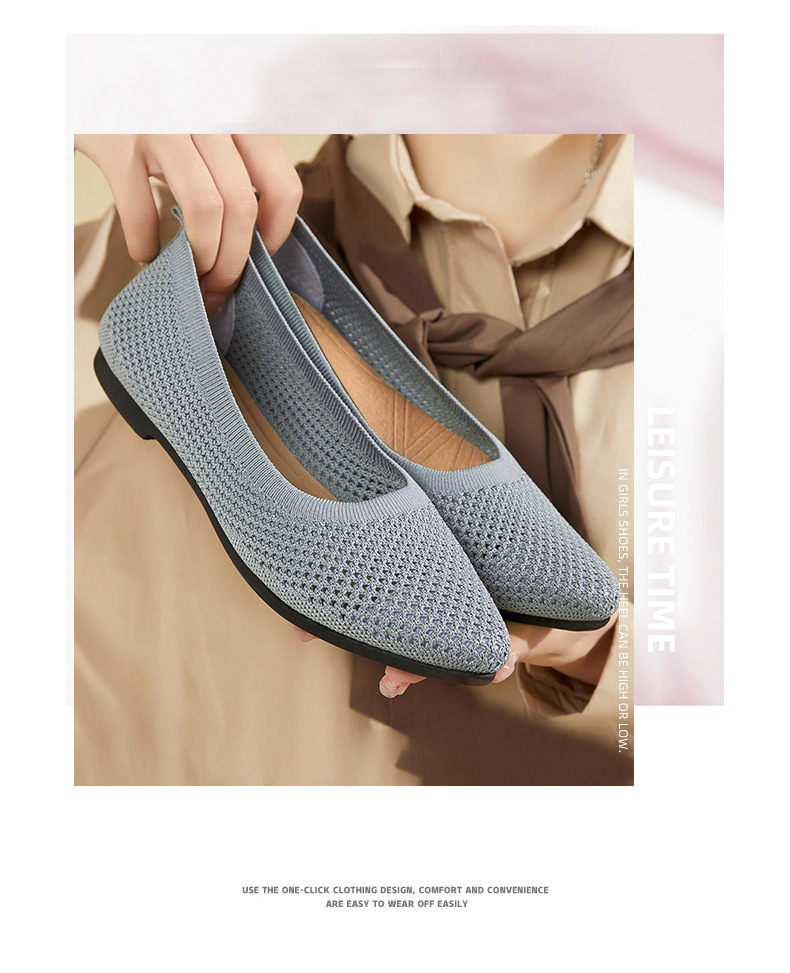 Zapatos mujer comercio exterior transfronterizo del sudeste asiático zapatos de mujer zapatos planos puntiagudos de color sólido zapatos de tela casuales de mujer zapatos de punto tejidos voladores