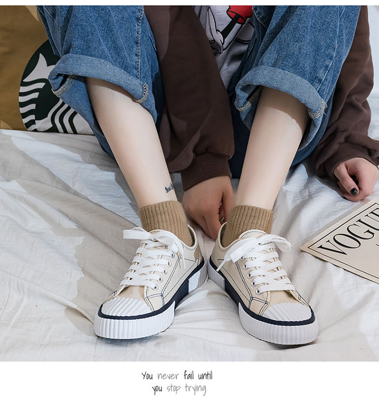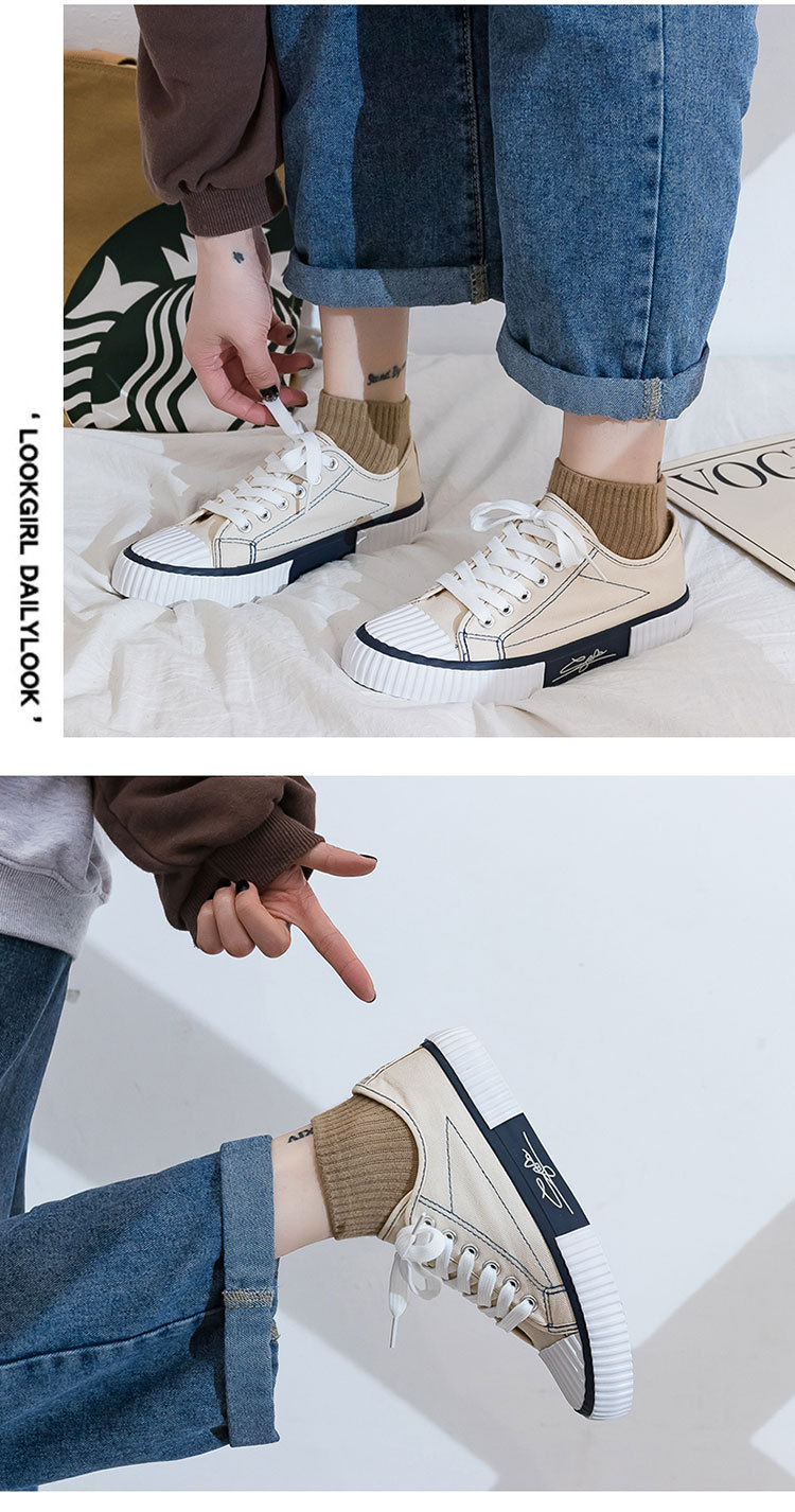 2023 primavera y otoño nuevos zapatos de lona estudiantes femeninos zapatos de tablero con cordones zapatos de galletas zapatos transpirables zapatos casuales de mujer zapatos blancos
