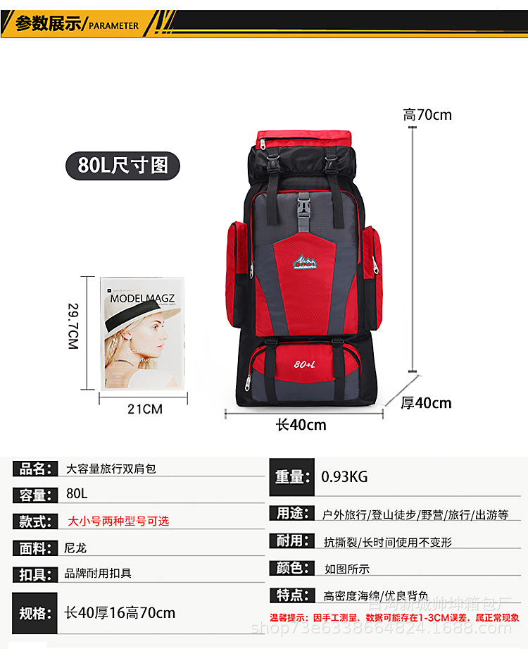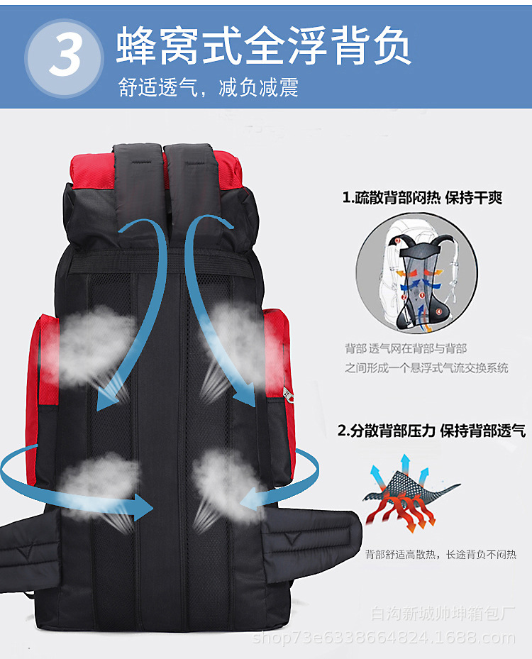Mochila de viaje de 80L - Gran capacidad, para senderismo y montañismo