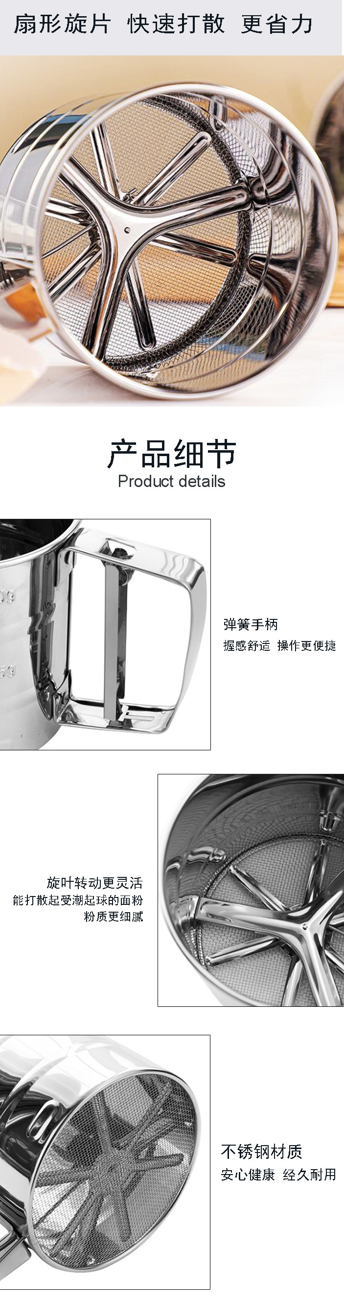 Tamizador de harina de acero inoxidable, tamizador de harina semiautomático, tamizador de harina manual creativo para hornear, tamizador de harina giratorio, azúcar en polvo para hornear
