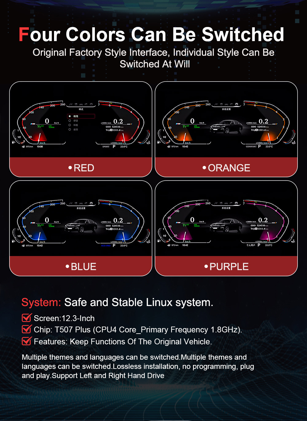 Adecuado para BMW 1234567 serie X1X2X3X4X5X6GT todos los medidores LCD con HUD cuatro temas de conmutación