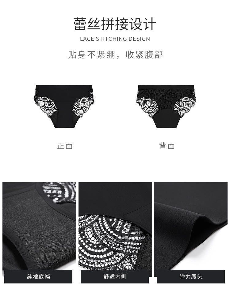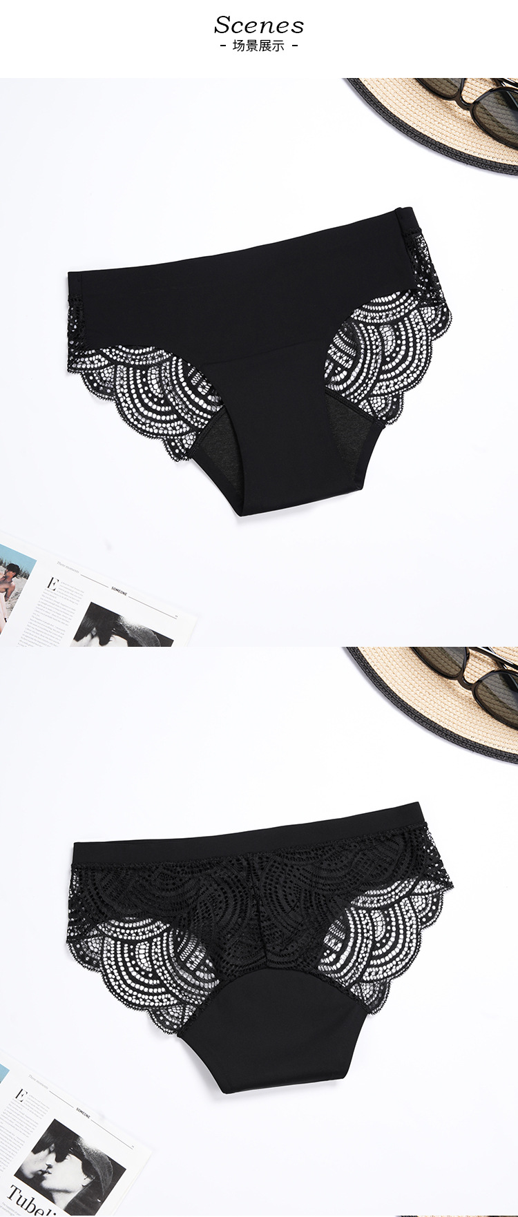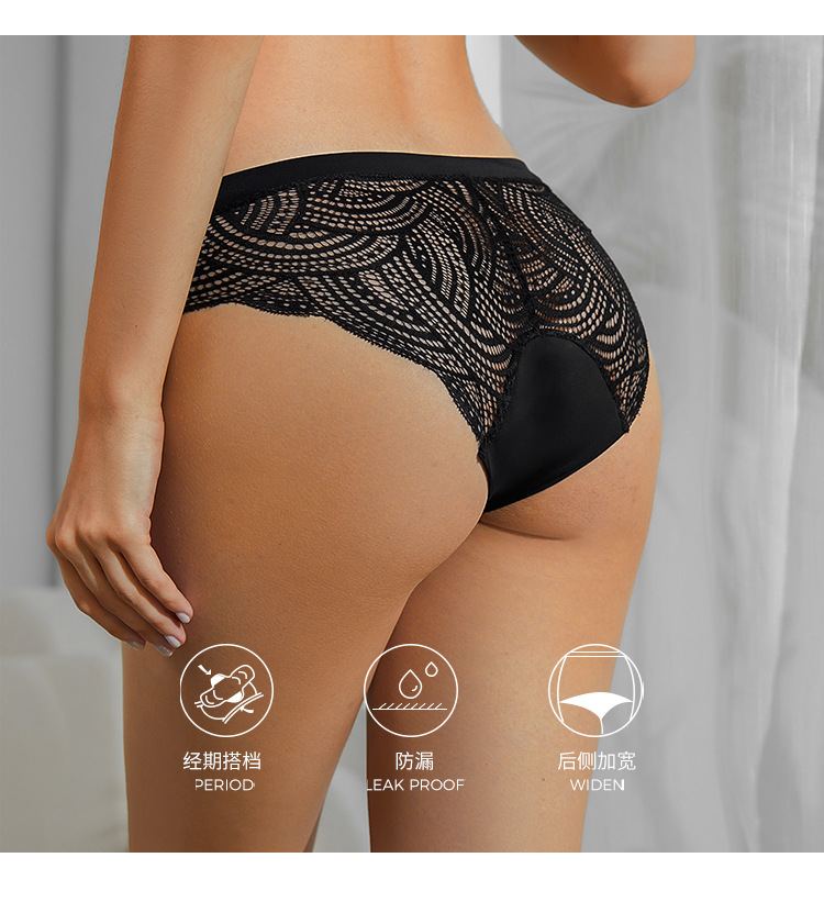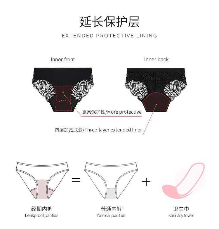 Talla extra de cuatro capas anti-fuga lateral ropa interior menstrual de las mujeres sexy encaje costura algodón entrepierna transpirable antibacteriano calzoncillos mujeres