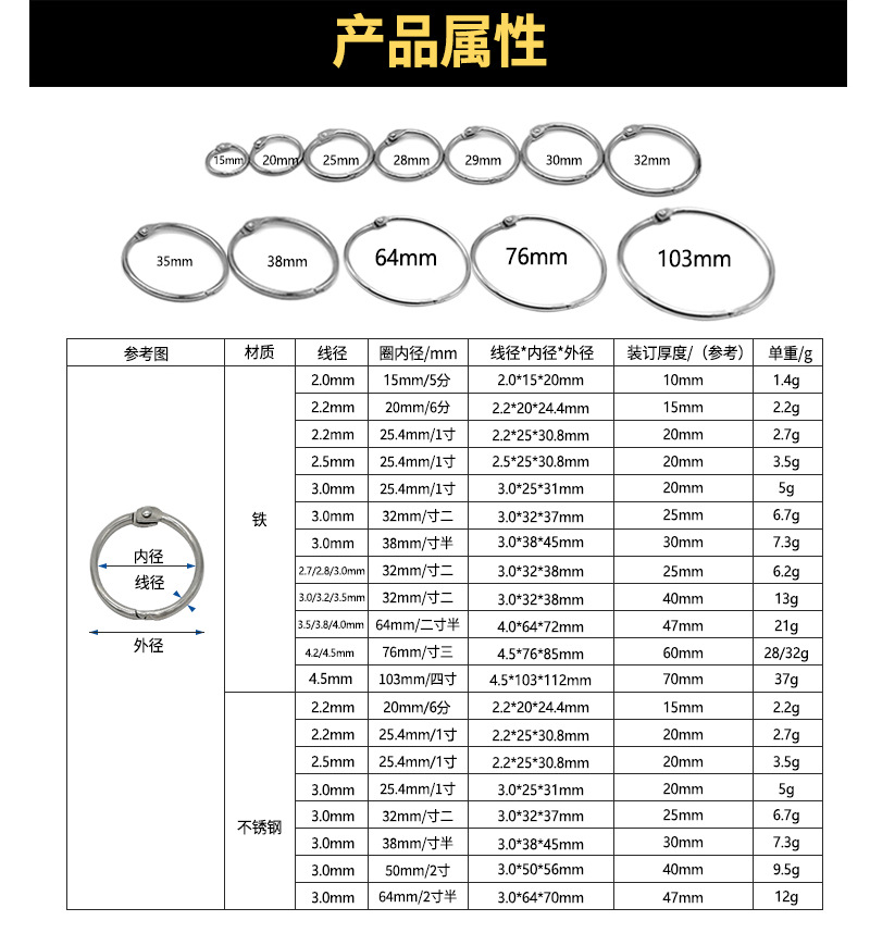 活页环 卡圈 书圈 金属活页环 金属活页圈 活页圈 开口圈 收纳圈 台历圈 书环 装订环