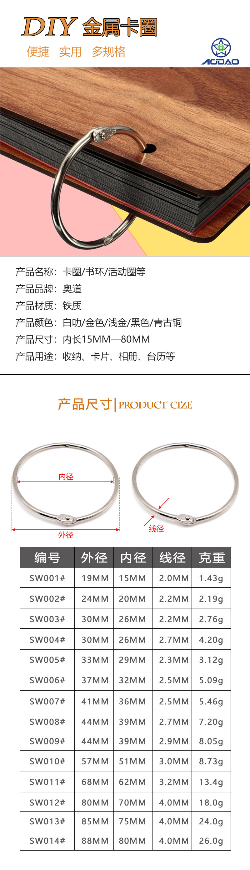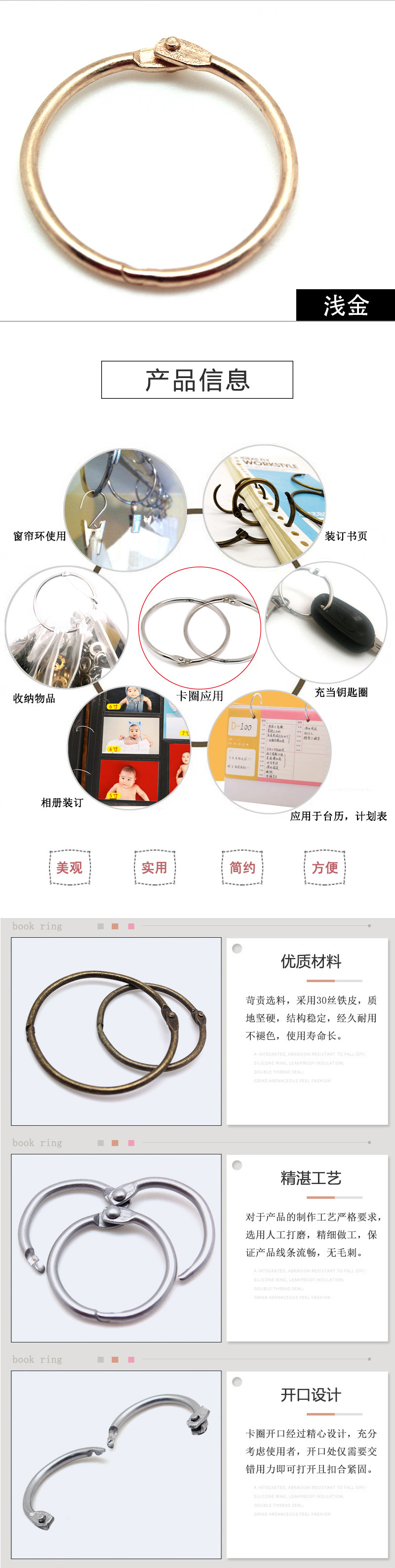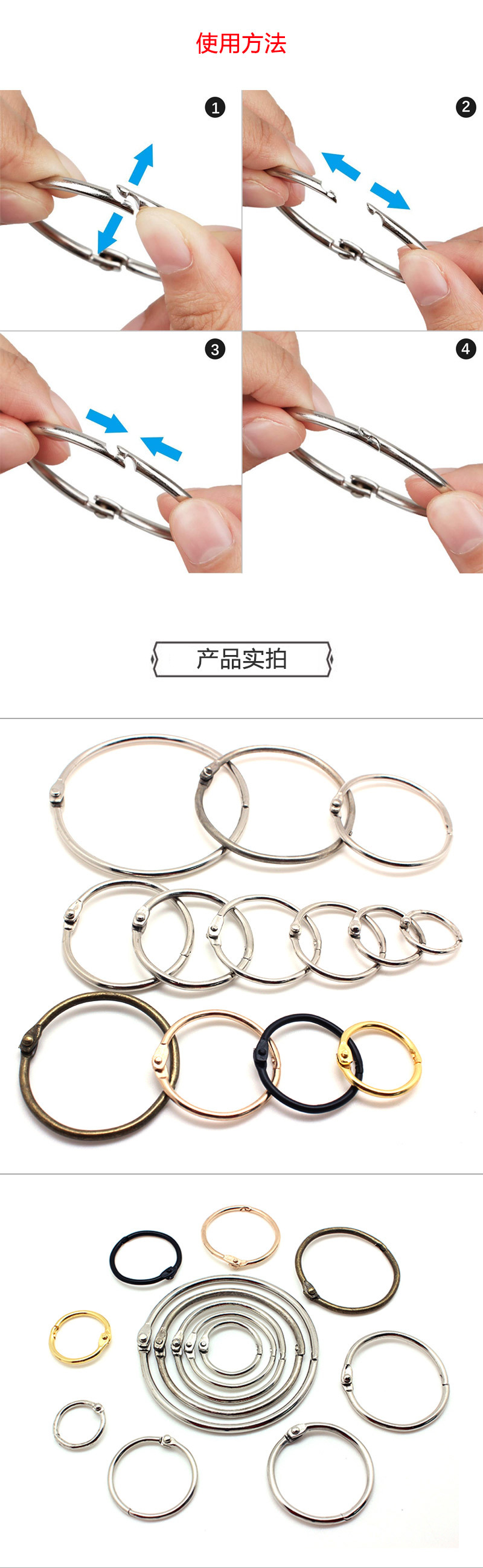Círculo de libro transfronterizo anillo de libro anillo de apertura anillo de hojas sueltas de bricolaje de metal anillo de libro redondo tarjeta de papel escritorio de mano calendario tarjeta de almacenamiento anillo de tarjeta