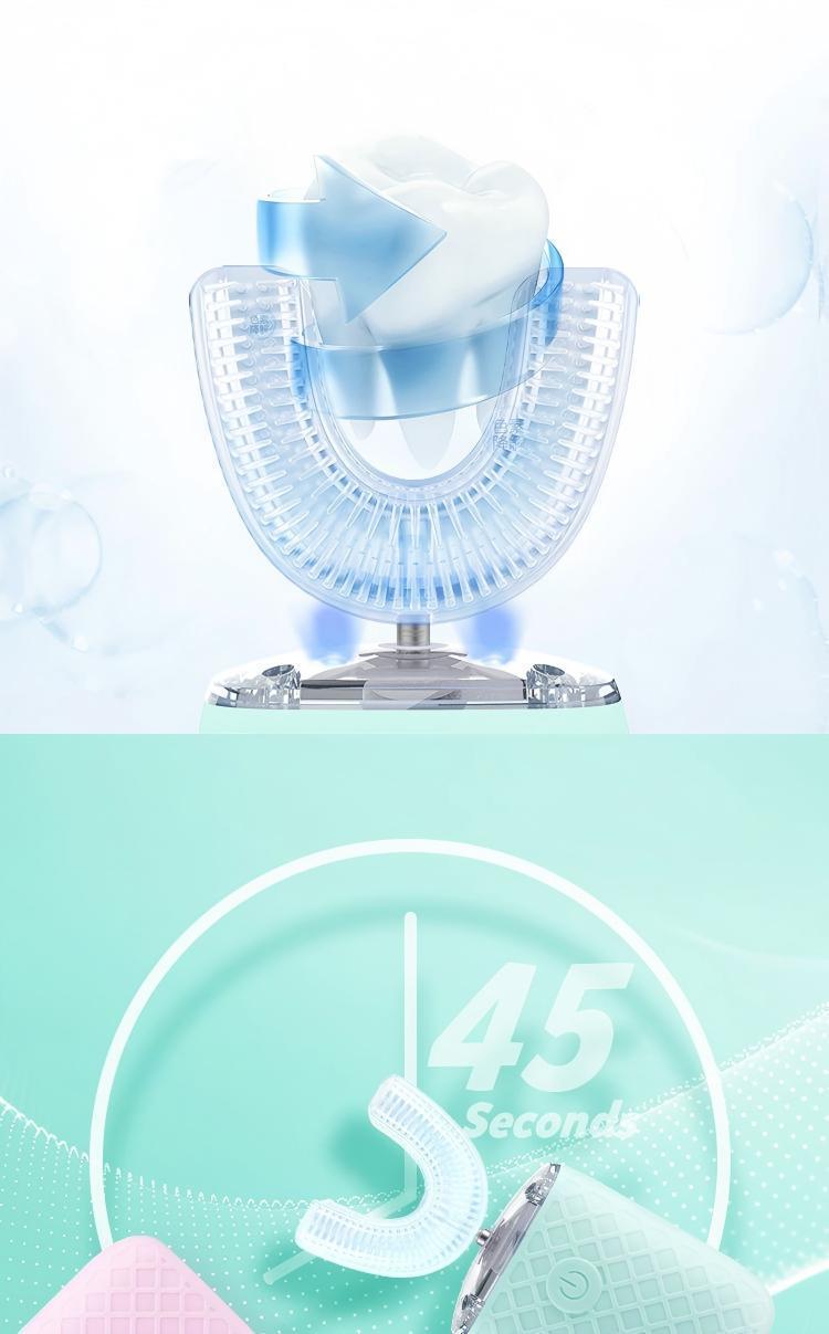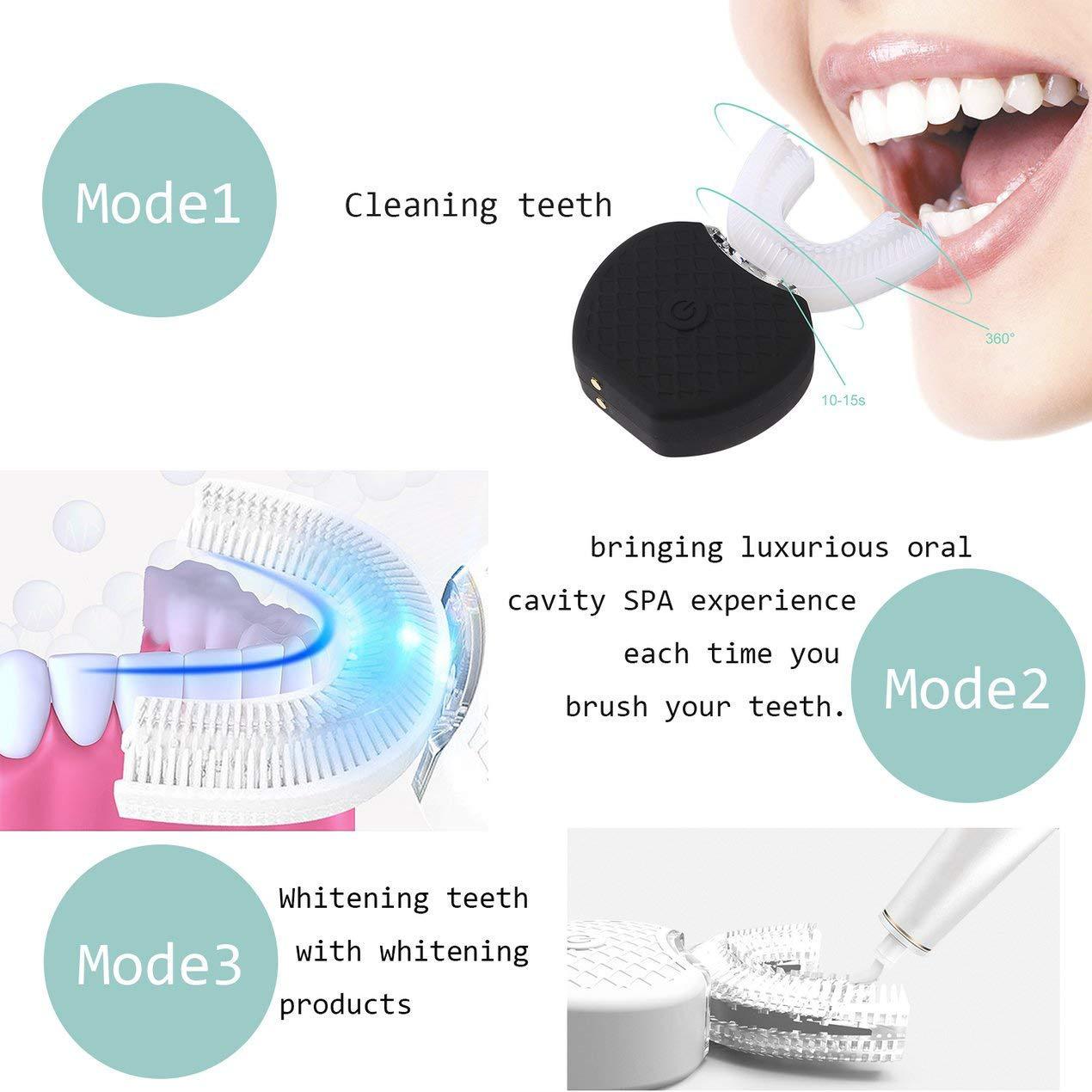 Cepillo de dientes eléctrico en forma de U, cepillo de dientes inteligente 360 ° Limpiador dental ultrasónico, cepillo de dientes eléctrico recargable por USB para personas con poca paciencia