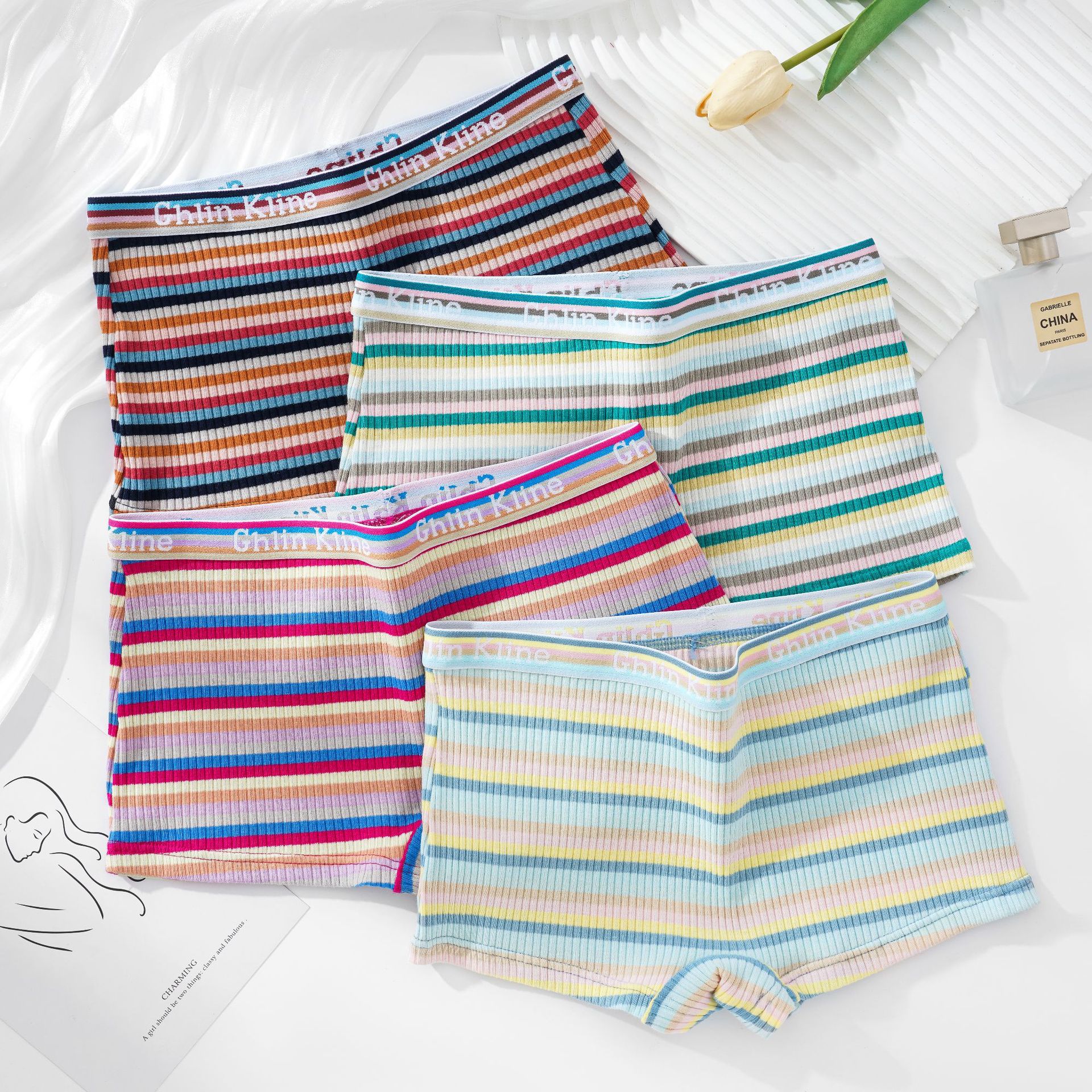 Calzoncillos Boxer a rayas retro Calzoncillos Boxer de cintura media para mujer moda europea y americana más ropa interior de algodón ropa interior sin exposición