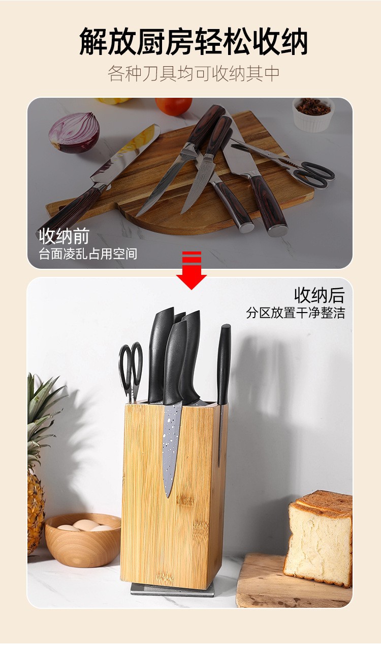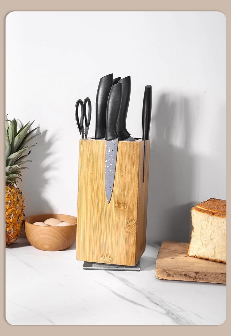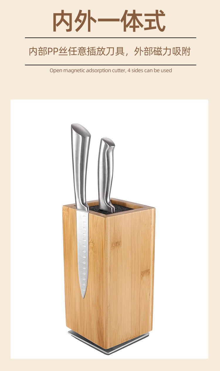 Nuevo 360 ° Portacuchillos magnético giratorio de madera con inserción libre de portacuchillos de alambre de PP, estante de almacenamiento de cuchillos magnético