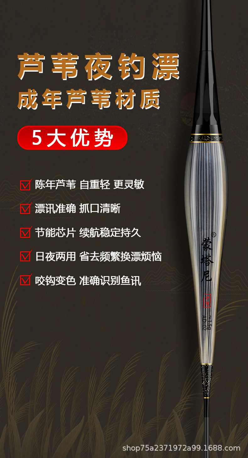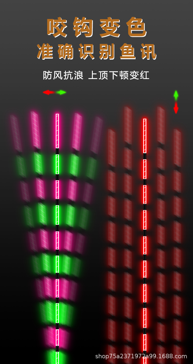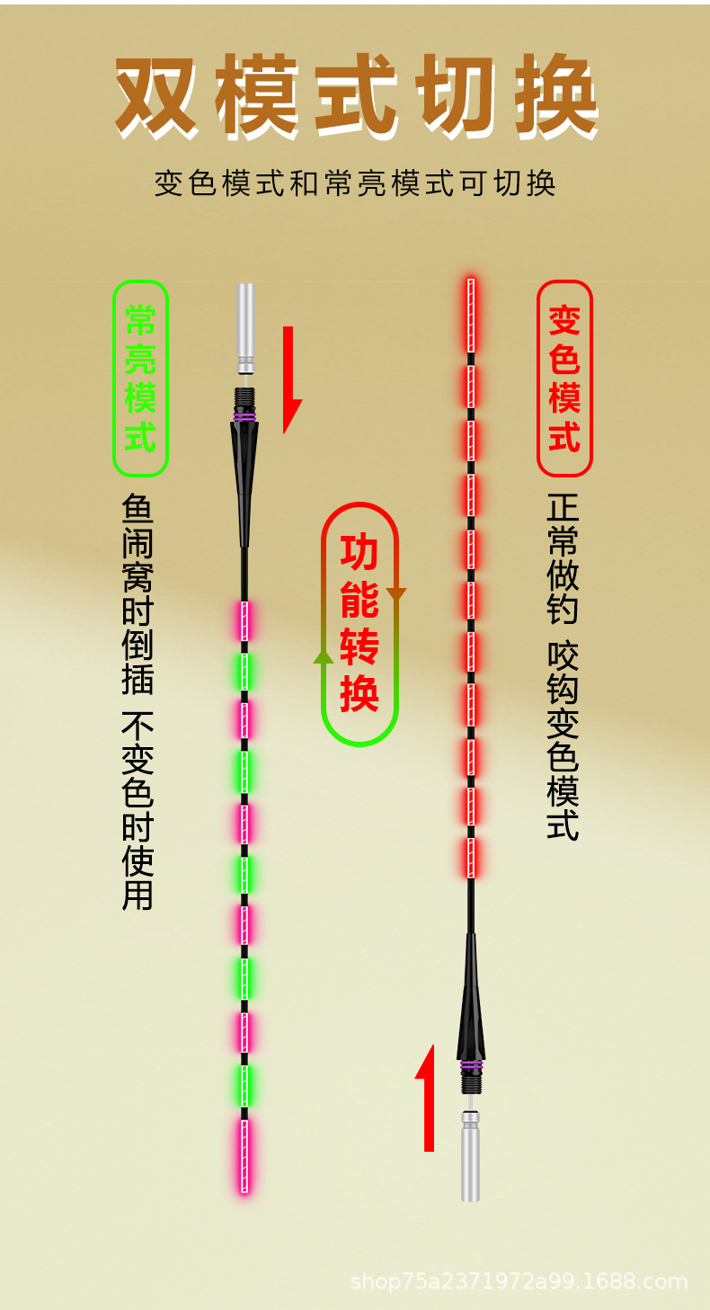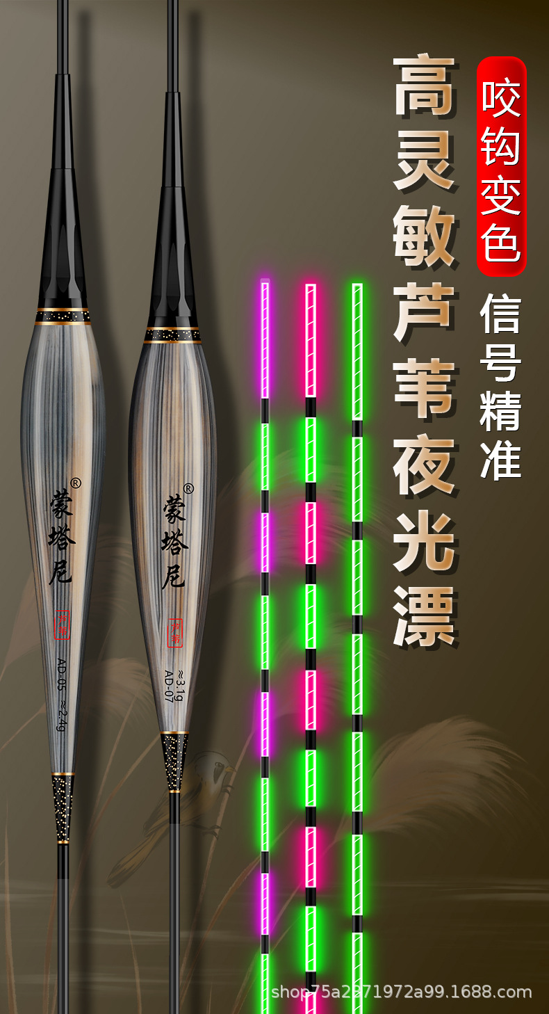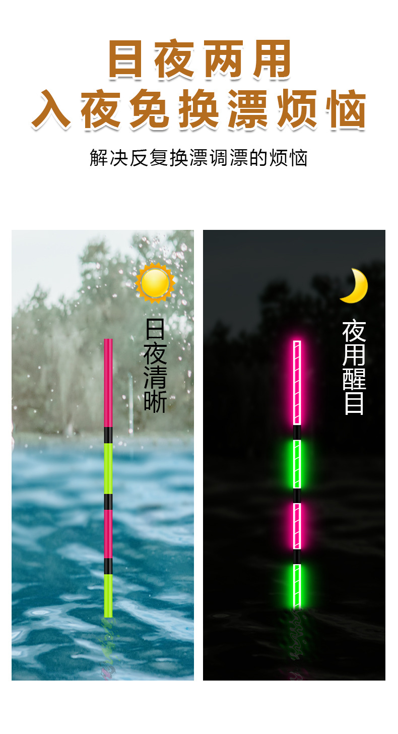 Montani Reed mordedura de gancho de cambio de color flotador electrónico día y noche de doble uso flotador luminoso flotador de peces de alta sensibilidad carpa flotador
