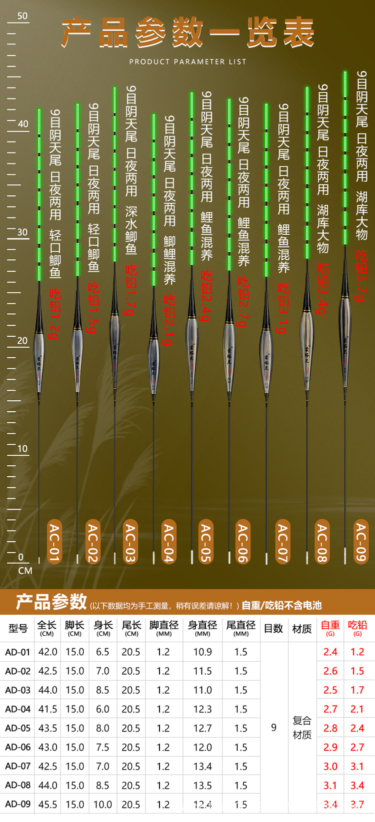 EspecificacionesAD-01 [1,2g de plomo comer] cola sin sombra de agua,AD-02 [1,5G plomo comer] cola sin sombra de agua,AD-03 [comer plomo 1,8g] cola sin sombra de agua,AD-04 [comer plomo 2,1g] cola sin sombra de agua,AD-05 [comer plomo 2,4g] agua sin sombra cola,AD-06 [2,7g plomo comer] cola sin sombra de agua,AD-07 [comer plomo 3,1g] cola sin sombra de agua,AD-08 [comer plomo 3,4g] cola sin sombra de agua,AD-09 [comiendo plomo 3,7g] cola sin sombra de agua,AD-01 [comer plomo 1,2g] cola de doble uso día y noche,AD-02 [1,5G de plomo] día y noche cola de doble uso,AD-03 [comer plomo 1,8g] cola de doble uso día y noche,AD-04 [comer plomo 2,1g] día y noche cola de doble uso,AD-05 [comer plomo 2,4g] cola de doble uso día y noche,AD-06 [comer plomo 2,7g] cola de doble uso de día y noche,AD-07 [comer plomo 3,1g] día y noche cola de doble uso,AD-08 [comer plomo 3,4g] cola de doble uso día y noche,AD-09 [comer plomo 3,7g] cola de doble uso día y noche,AD-01 [comiendo plomo 1,2g] cola nublada Verde completa,AD-02 [1,5G plomo comer] cola nublada verde completo,AD-03 [comiendo plomo 1,8g] cola nublada Verde completa,AD-04 [comiendo plomo 2,1g] cola nublada Verde completa,AD-05 [comer plomo 2,4g] cola nublada Verde completa,AD-06 [comer plomo 2,7g] cola nublada Verde completa,AD-07 [comer plomo 3,1g] cola nublada Verde completa,AD-08 [comer plomo 3,4g] cola nublada Verde completa,AD-09 [comiendo plomo 3,7g] cola nublada Verde completa,AD-01 [1,2g de plomo comer] fibra de vidrio cola dura,AD-02 [1,5G de plomo comer] fibra de vidrio cola dura,AD-03 [comer plomo 1,8g] fibra de vidrio cola dura,AD-04 [comer plomo 2,1g] fibra de vidrio cola dura,AD-05 [comer plomo 2,4g] fibra de vidrio cola dura,AD-06 [2,7g de plomo comiendo] fibra de vidrio cola dura,AD-07 [comer plomo 3,1g] fibra de vidrio cola dura,AD-08 [comer plomo 3,4g] fibra de vidrio cola dura,AD-09 [comer plomo 3,7g] fibra de vidrio cola dura
