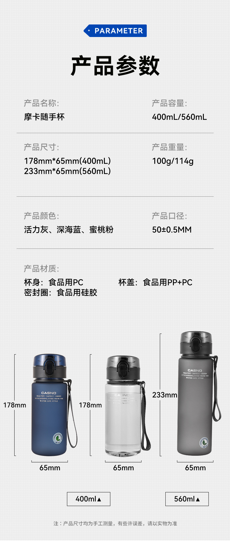 Taza de agua deportiva para estudiantes masculinos y femeninos botella de agua de verano portátil de gran capacidad espacio resistente a la caída Copa fitness taza de té de plástico