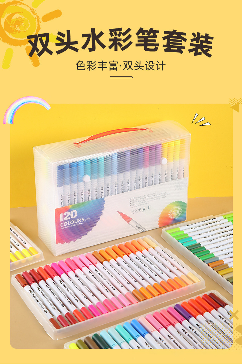 Bolígrafo de acuarela de doble punta, 120 colores, lavable, respetuoso con el medio ambiente, juego de pinceles para niños, pintura artística para estudiantes, bolígrafo de línea de gancho a base de agua