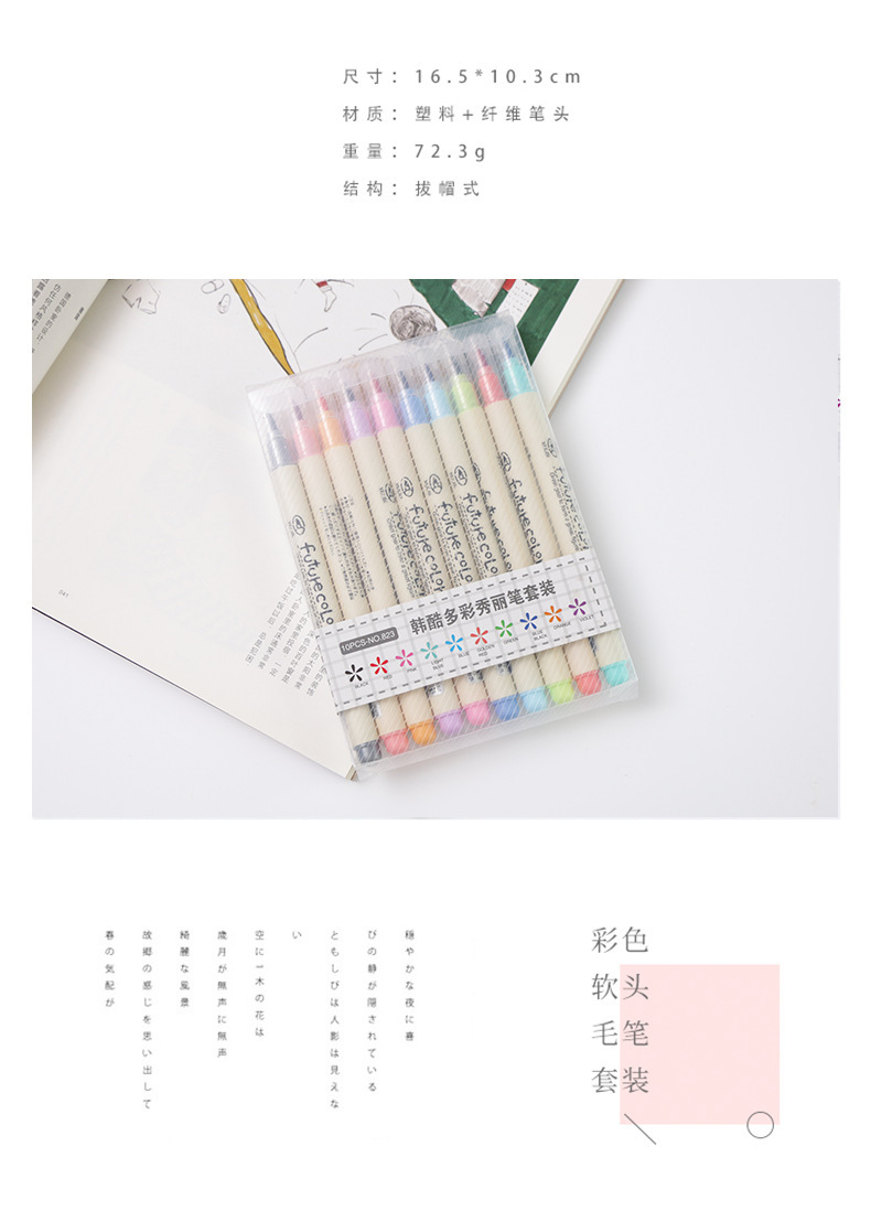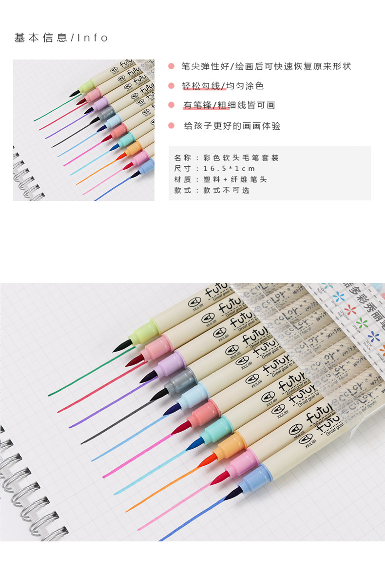 Han Ku 823 color acuarela pluma suave pelo belleza pluma escritura cepillo 10 color traje niños estudiante dibujos animados caligrafía cepillo